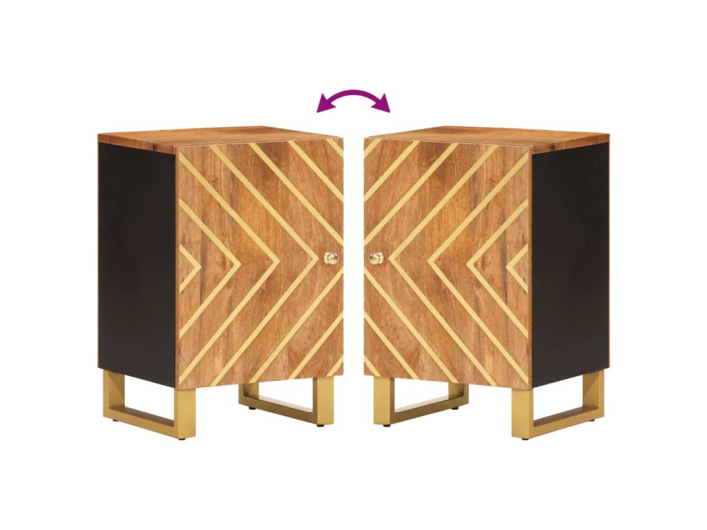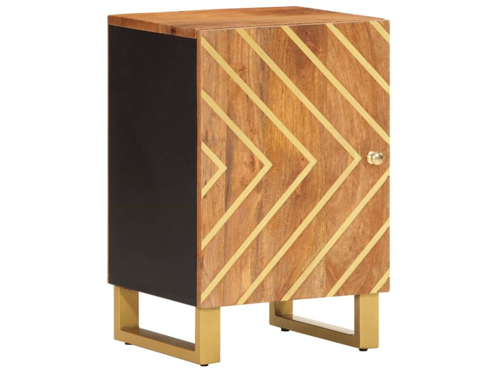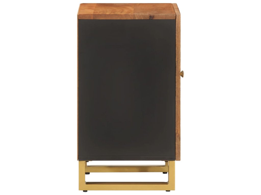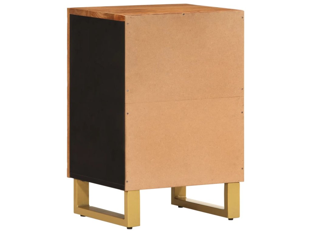 - Materiál: Mangovníkový masív s povrchovou úpravou v akáciovej farbe, MDF, železo