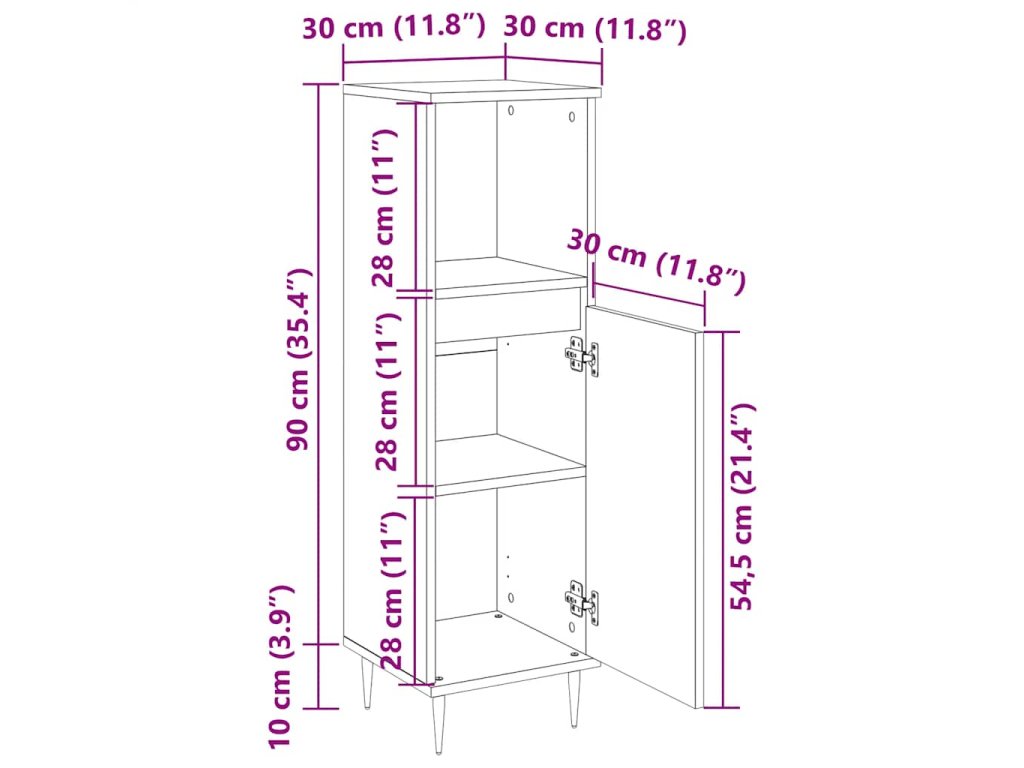 - Železné nožičky: Železné nožičky dodajú vášmu interiéru industriálny štýl a zároveň zabezpečia stabilitu kúpeľňovej skrinky.