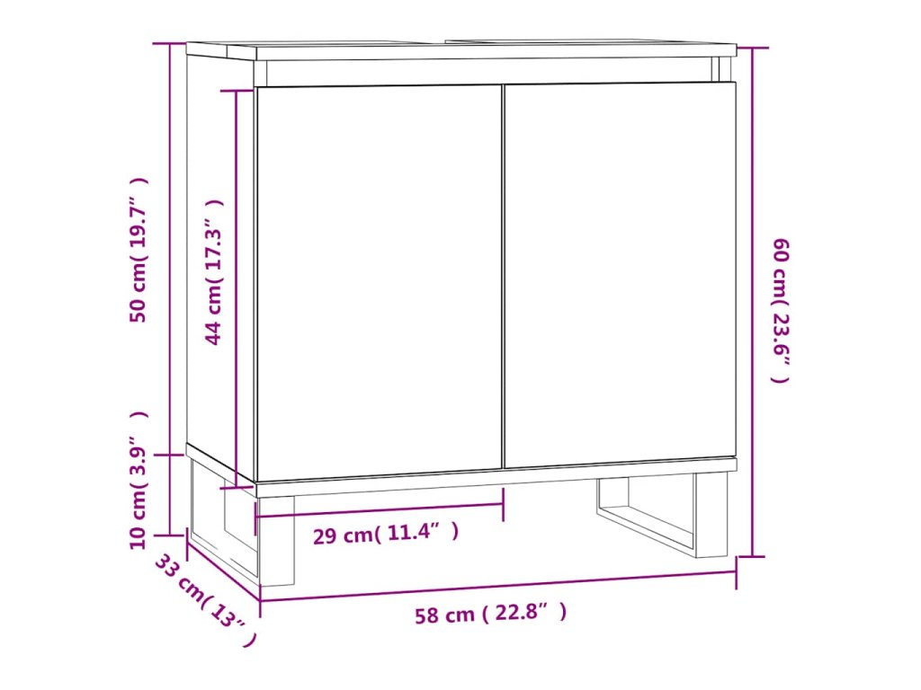 - Železné nožičky: Železné nožičky dodajú vášmu interiéru industriálny štýl a zároveň zabezpečia stabilitu kúpeľňovej skrinky.