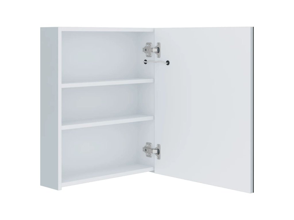 Je vyrobená z kvalitnej MDF dosky s melamínovým povrchom, čo zaručuje dlhodobé použitie. Vďaka dvom energeticky účinným LED pásikom sa budete vidieť v tom najlepšom svetle pri nanášaní make-upu, česaní a starostlivosti o pleť. Osvetlí tak nielen vašu izbu, tvár, ale aj úsmev. Vnútri sa nachádzajú 3 police, ktoré poskytujú dostatok úložného miesta na všetky toaletné potreby a kozmetiku. Pomocou spodného tlačidla môžete svetlo ľahko zapínať a vypínať. Táto štýlová a funkčná skrinka dodá vašej izbe originálny dizajn!