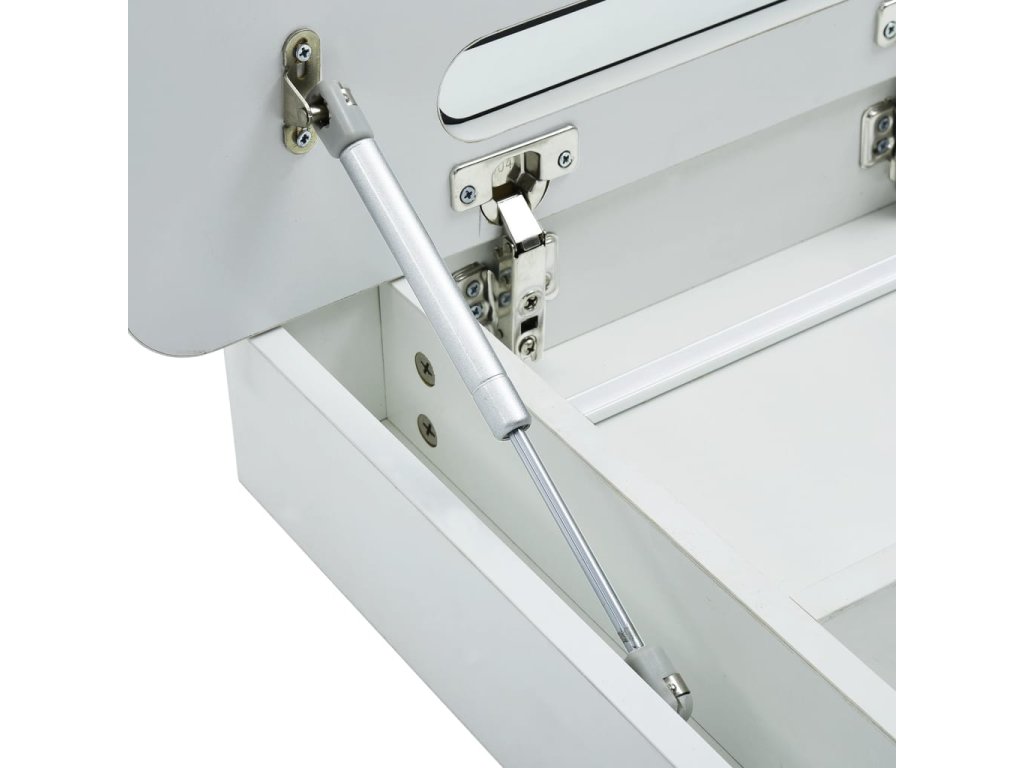 Je vyrobená z kvalitnej MDF dosky s melamínovým povrchom, čo zaručuje dlhodobé použitie. Vďaka integrovanej LED trubici sa budete vidieť v tom najlepšom svetle pri nanášaní make-upu, česaní a starostlivosti o pleť. Osvetlí tak nielen vašu izbu, tvár, ale aj úsmev. Dve poličky ponúkajú dostatok úložného miesta vo vašej kúpeľni. Jednoducho do nich uložíte svoje základné toaletné potreby a kozmetiku, ako sú mydlá, šampóny, zubnú pastu atď. Táto štýlová a funkčná skrinka dodá vašej kúpeľni originálny dizajn!