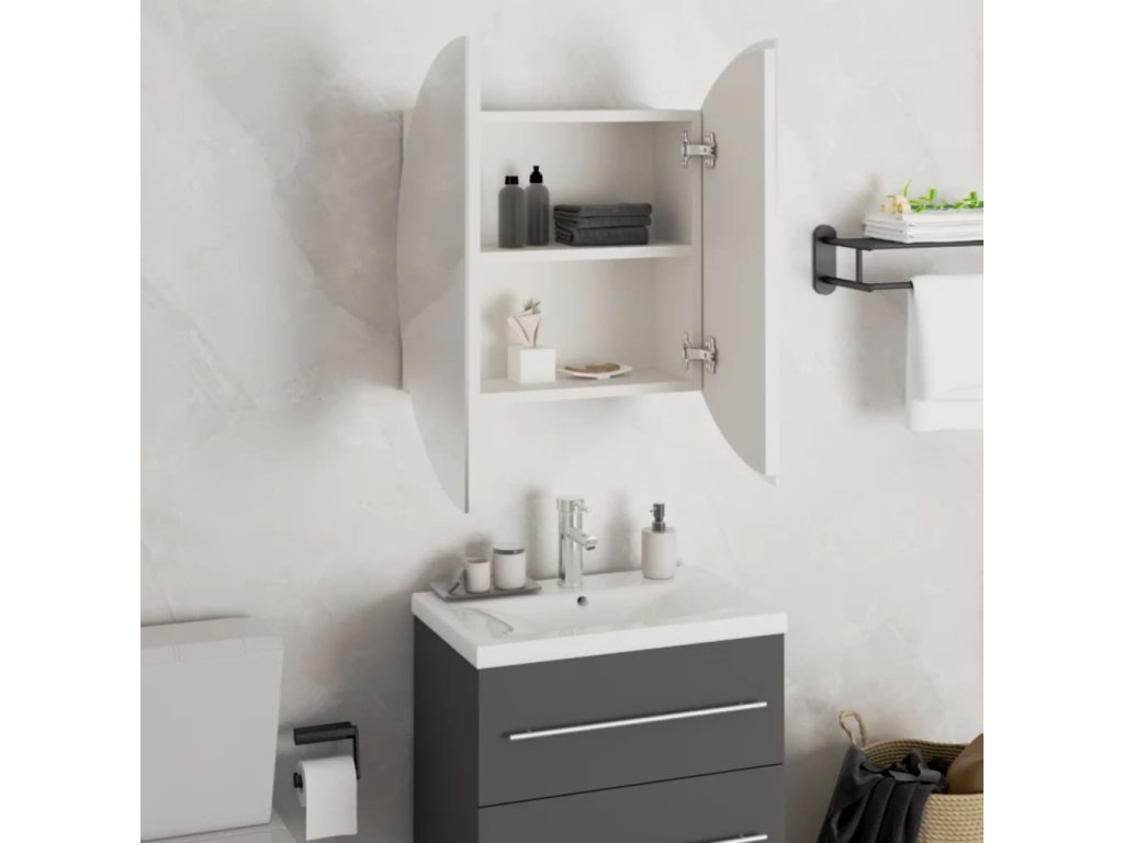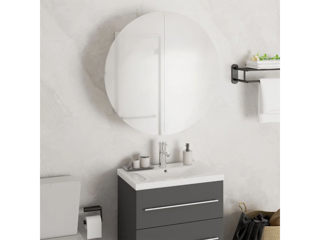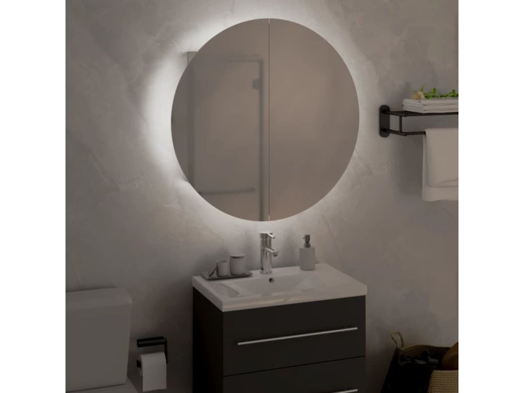 Majte svoje líčidlá usporiadané s touto trendovou kúpeľňovou skrinkou s okrúhlym zrkadlom a LED!