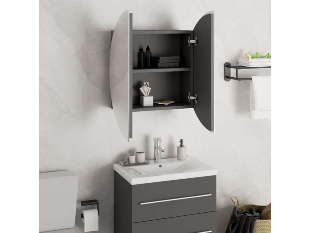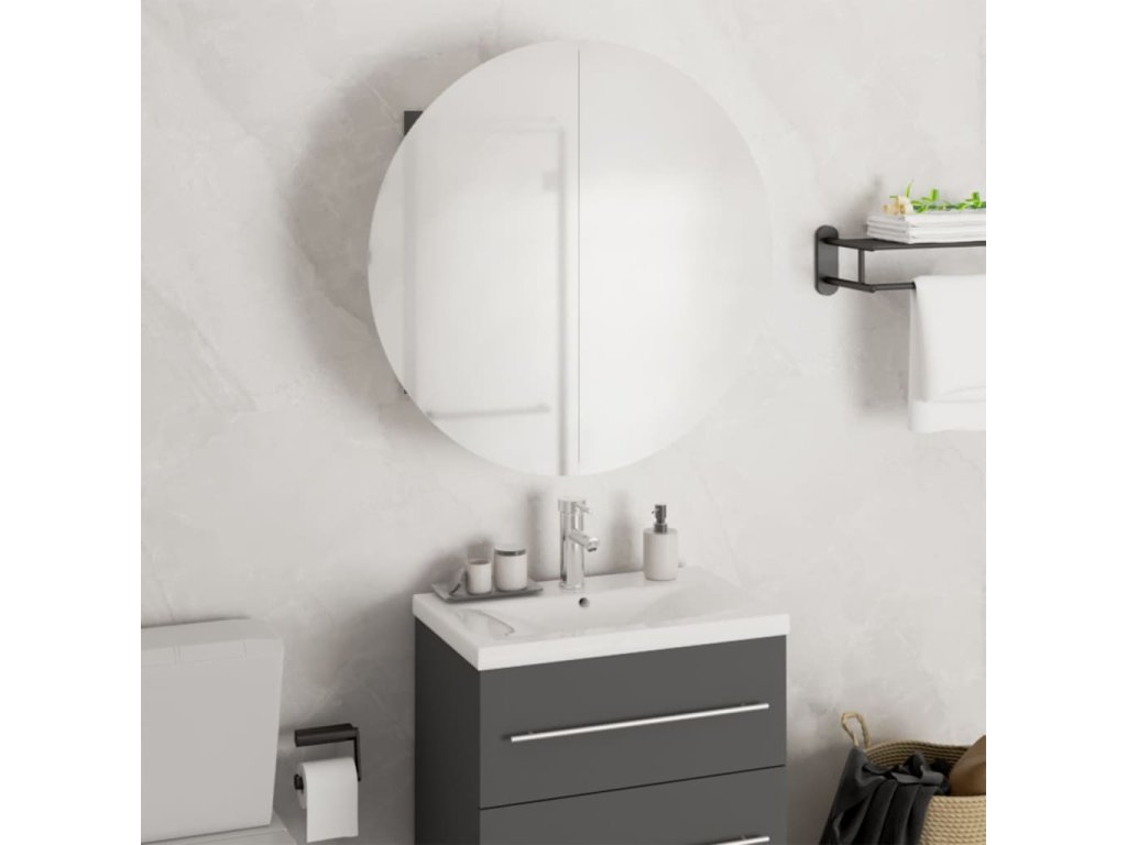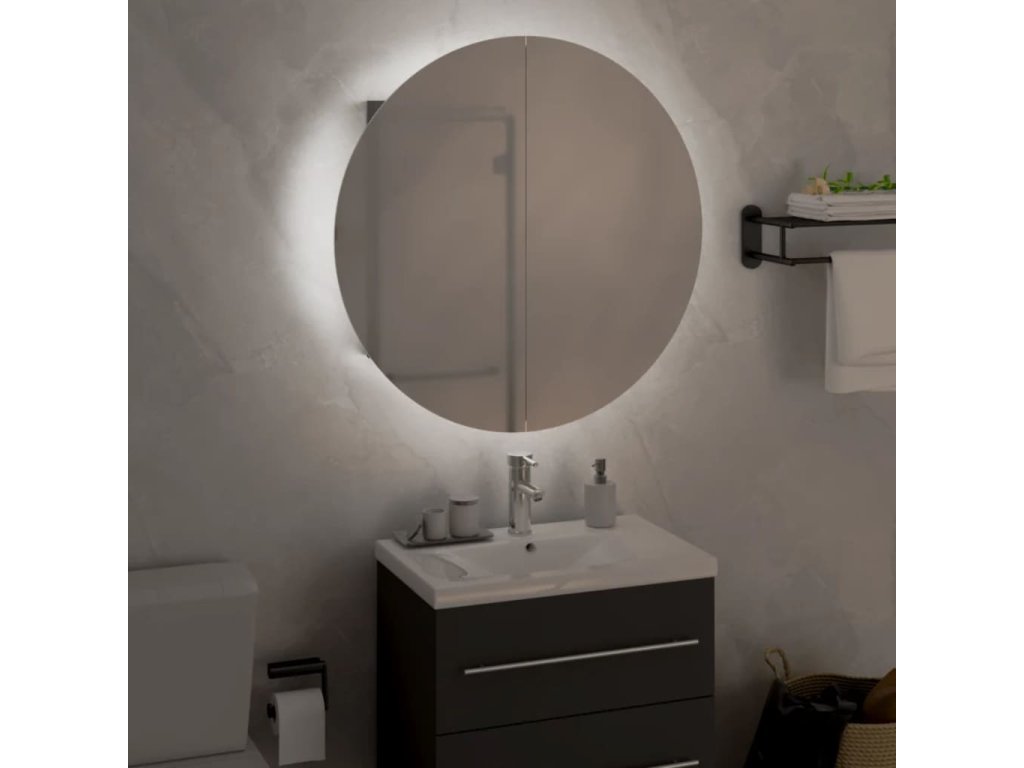 Majte svoje líčidlá usporiadané s touto trendovou kúpeľňovou skrinkou s okrúhlym zrkadlom a LED!