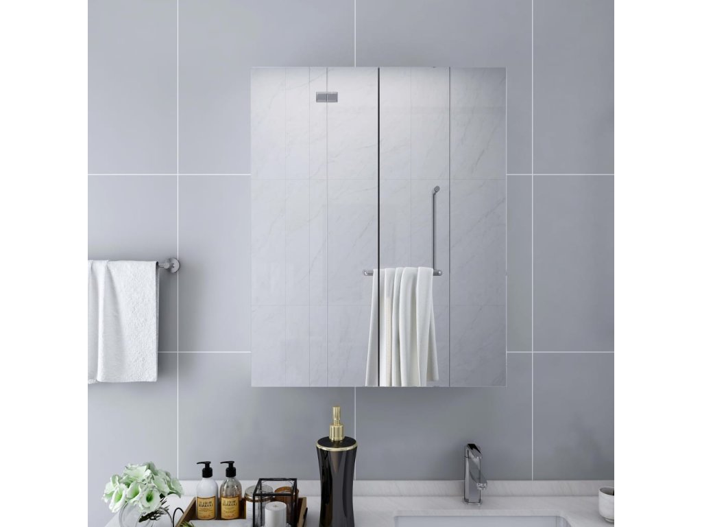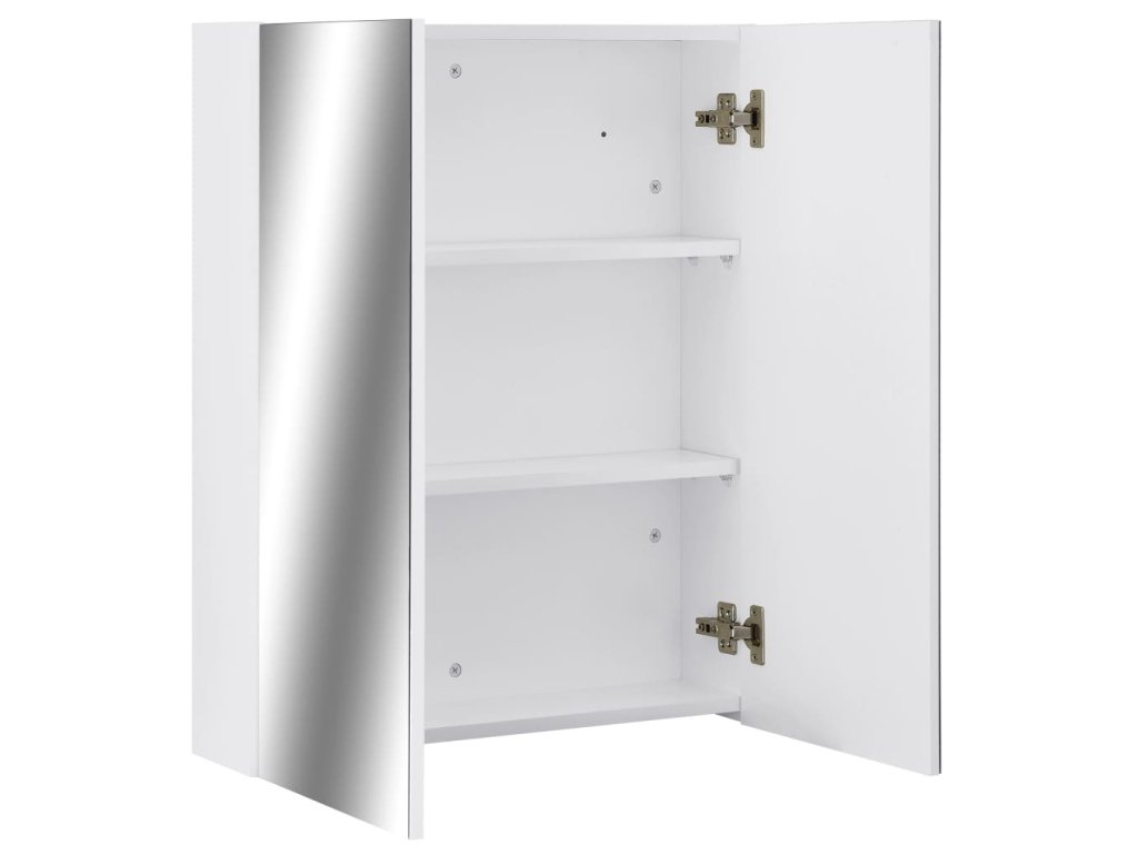 Nástenná skrinka so zrkadlom je vyrobená zo skla a MDF s melamínovým povrchom, vďaka čomu je trvácna a stabilná. Skrinka má 2 dvierka a spolu 3 priečinky, a tak poskytuje dostatok úložného priestoru. Zaručene sa do nich zmestia všetky toaletné a kozmetické potreby, ako napríklad mydlá, šampóny, zubné pasty a podobne.