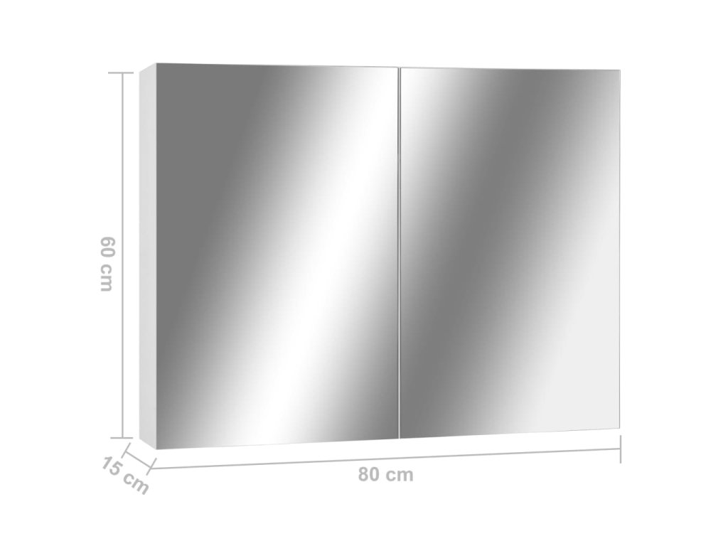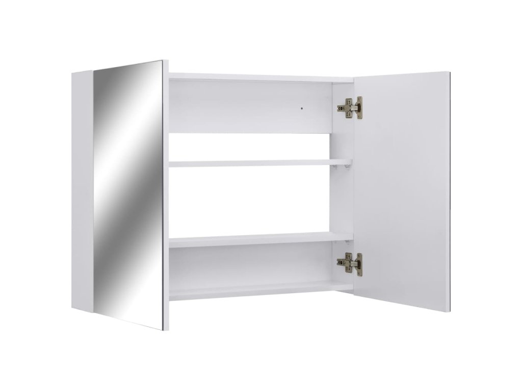 Nástenná skrinka so zrkadlom je vyrobená z MDF s melamínovým povrchom a skla, vďaka čomu je trvácna a stabilná. Skrinka má 2 dvierka a spolu 3 priečinky, a tak poskytuje dostatok úložného priestoru. Zaručene sa do nich zmestia všetky toaletné a kozmetické potreby, ako napríklad mydlá, šampóny, zubné pasty a podobne. V strede skrinky sa navyše nachádzajú dve pohyblivé priečky. Skrinku si môžete namontovať podľa svojich predstáv.