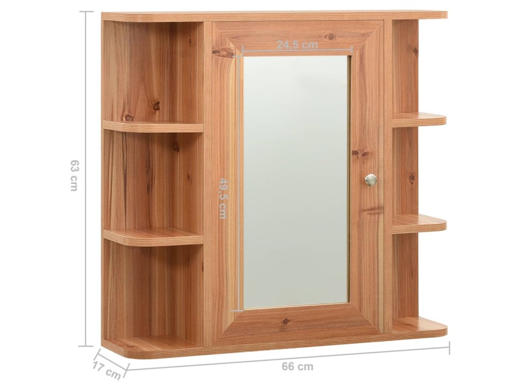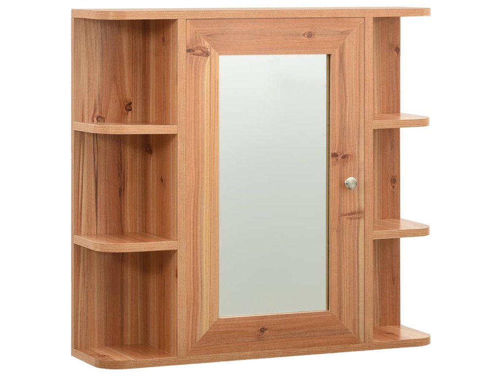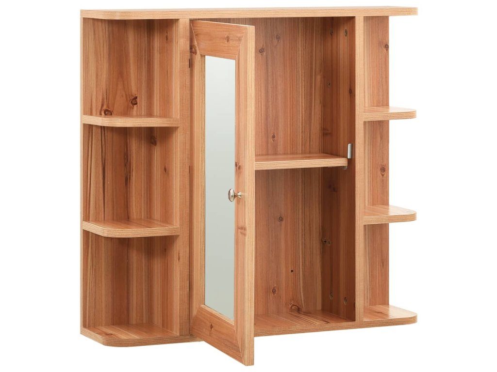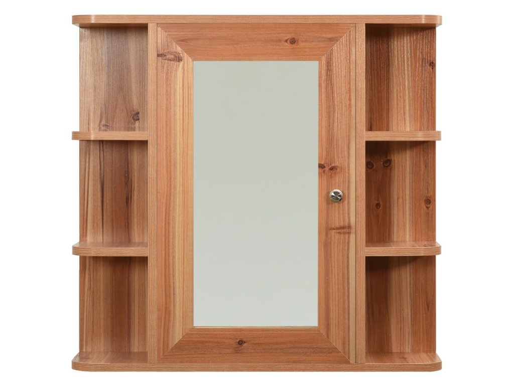 Nástenná skrinka so zrkadlom je vyrobená zo skla a MDF s melamínovým povrchom, vďaka čomu je trvácna a stabilná. Skrinka má 1 dvierka a spolu 8 priečinkov. 6 vonkajších priečinkov poskytuje dostatok úložného priestoru a 2 vnútorné priečinky ponúkajú ďalšie miesto na odkladanie rôznych predmetov. Zaručene sa do nich zmestia všetky toaletné a kozmetické potreby, ako napríklad mydlá, šampóny, zubné pasty a podobne.