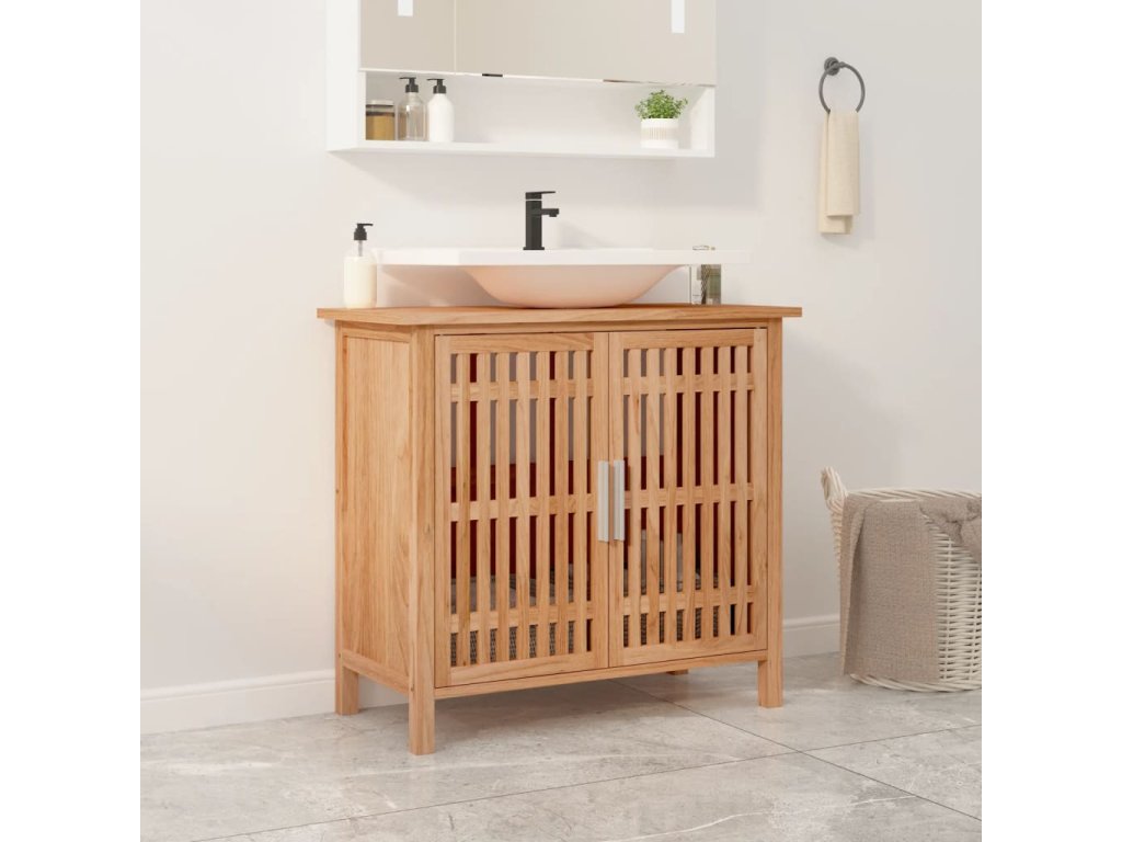 Táto drevená umývadlová skrinka s priestranným úložným priestorom je elegantným a nadčasovým doplnkom každej kúpeľne alebo umyvárne.