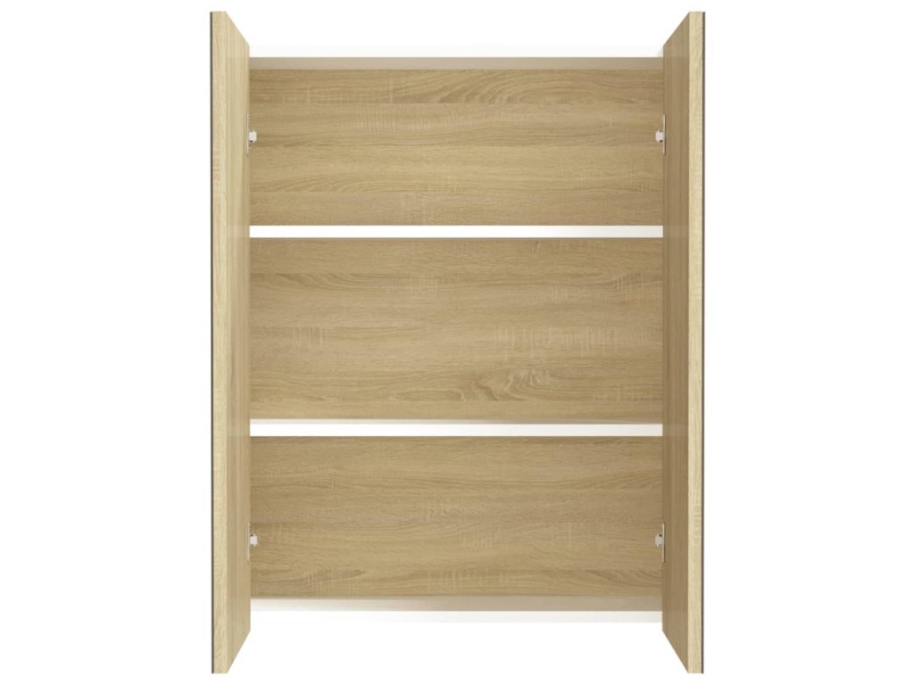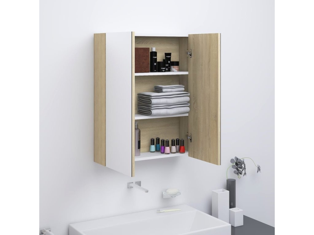 Nástenná skrinka so zrkadlom je vyrobená zo skla a MDF s melamínovým povrchom, vďaka čomu je trvácna a stabilná. Skrinka má 2 dvierka a spolu 3 priečinky, a tak poskytuje dostatok úložného priestoru. Zaručene sa do nich zmestia všetky toaletné a kozmetické potreby, ako napríklad mydlá, šampóny, zubné pasty a podobne.