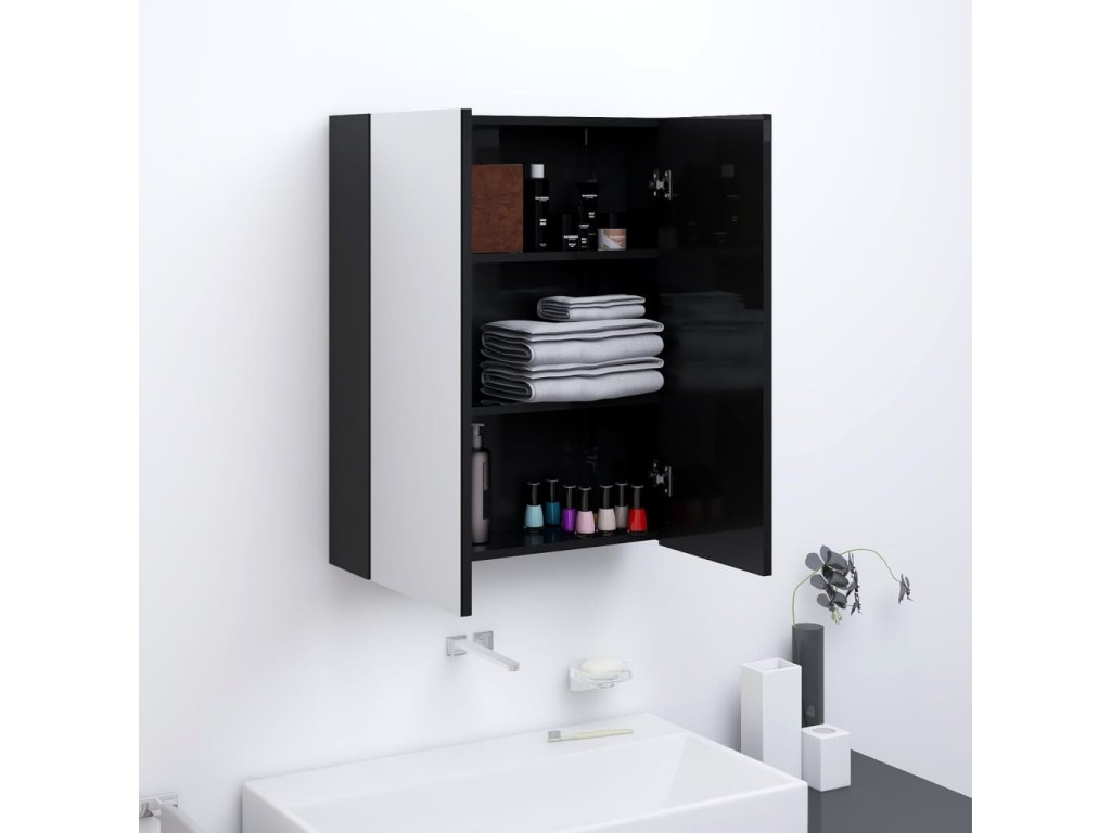 Nástenná skrinka so zrkadlom je vyrobená zo skla a MDF s melamínovým povrchom, vďaka čomu je trvácna a stabilná. Skrinka má 2 dvierka a spolu 3 priečinky, a tak poskytuje dostatok úložného priestoru. Zaručene sa do nich zmestia všetky toaletné a kozmetické potreby, ako napríklad mydlá, šampóny, zubné pasty a podobne.