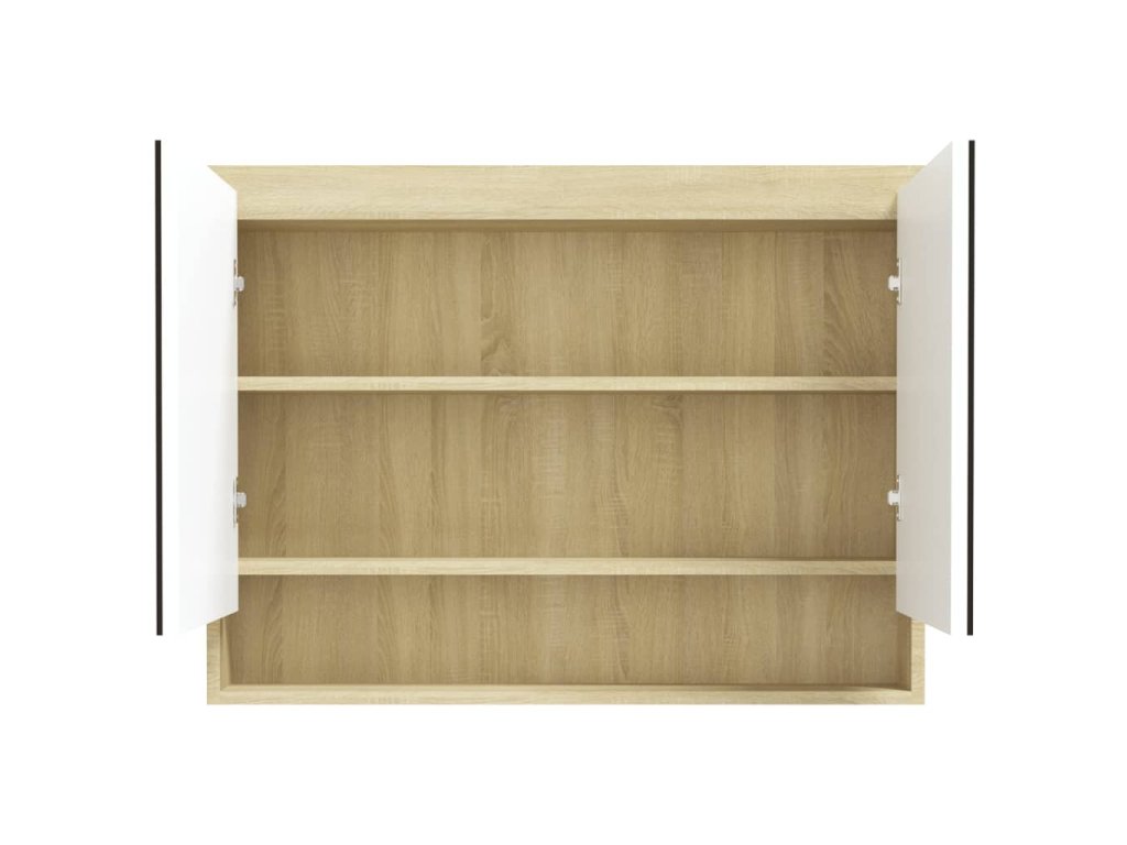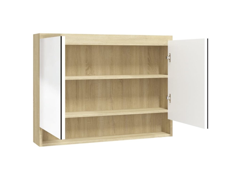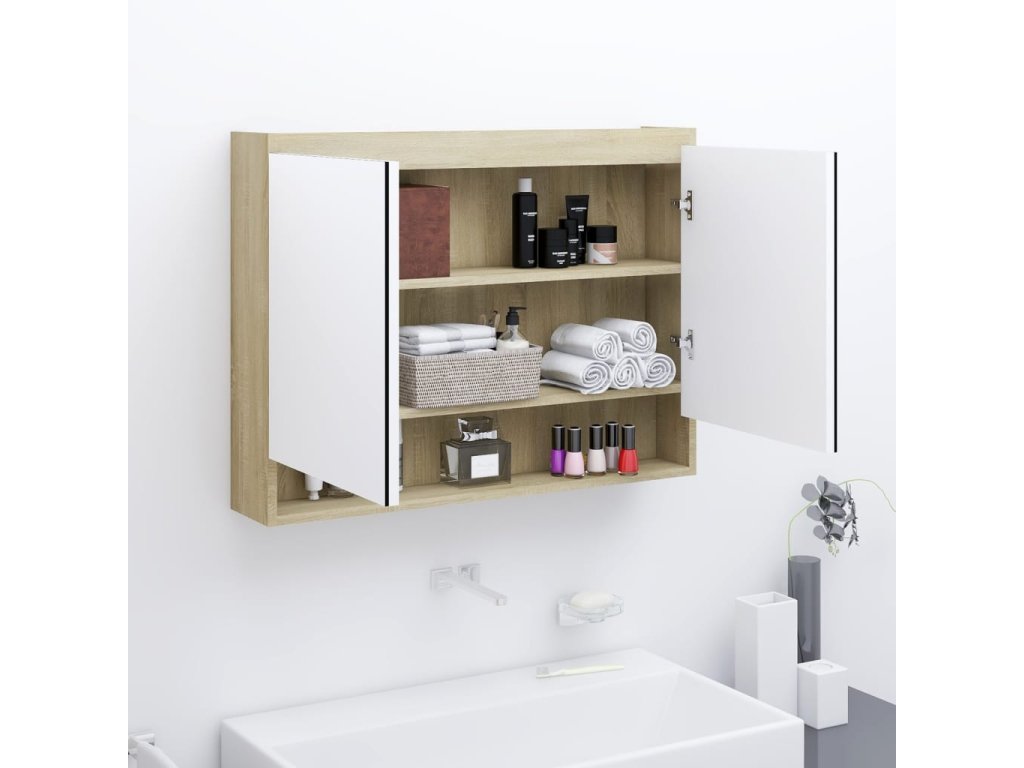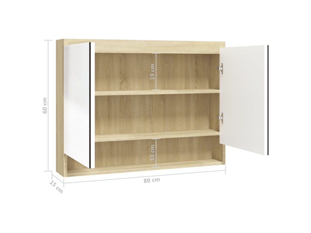 Nástenná skrinka so zrkadlom je vyrobená zo skla a MDF s melamínovým povrchom, vďaka čomu je trvácna a stabilná. Skrinka má 2 dvierka a spolu 3 priečinky, a tak poskytuje dostatok úložného priestoru. Zaručene sa do nich zmestia všetky toaletné a kozmetické potreby, ako napríklad mydlá, šampóny, zubné pasty a podobne.
