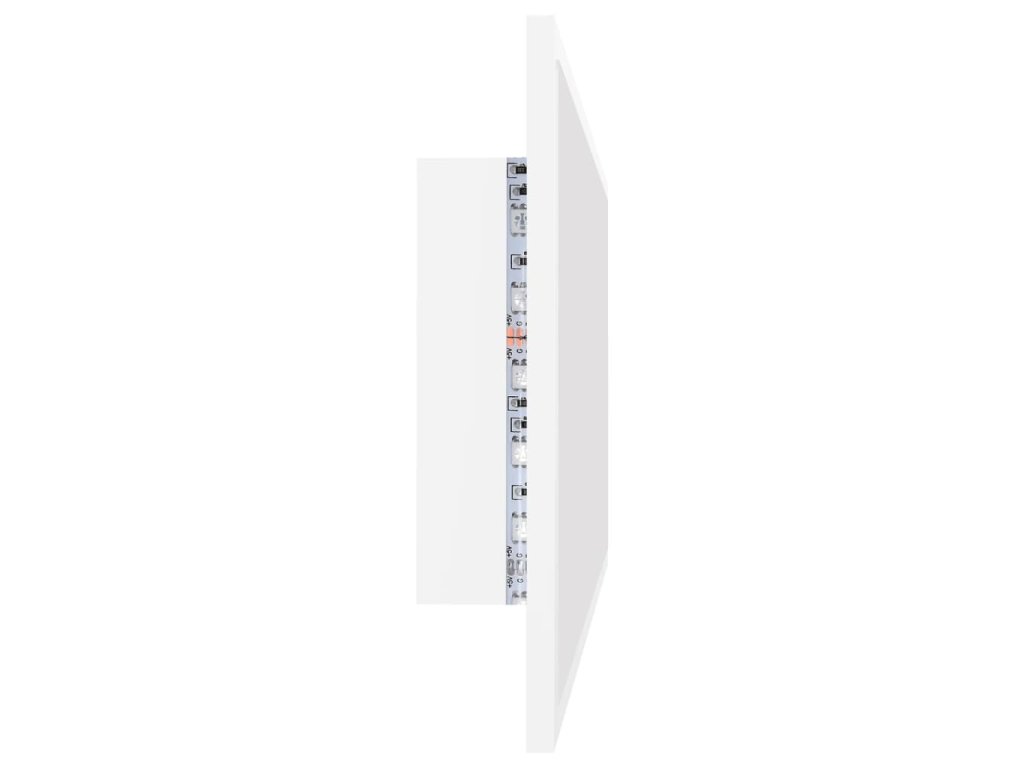 Nástenné zrkadlo je vyrobené zo spracovaného dreva a akrylu, vďaka čomu je trvácne a stabilné. Zrkadlo je vybavené RGB svetlom, a tak sa farba LED osvetlenia dá meniť. Navyše sa ľahko čistí vlhkou handričkou.
