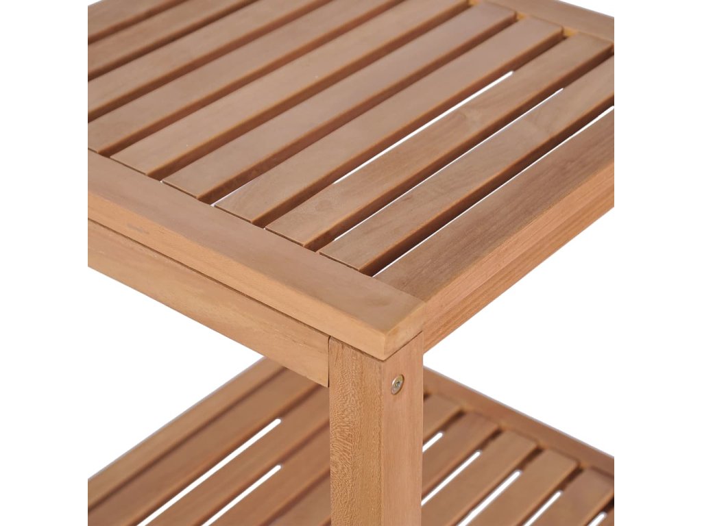 4-poličkový teakový regál môže byť použitý v kúpeľni ako stojan na uteráky alebo skrinka na umiestnenie kúpeľňových doplnkov. Môže sa použiť aj ako knižnica v obývacej izbe alebo ako stojan na vystavenie rastlín na terase.