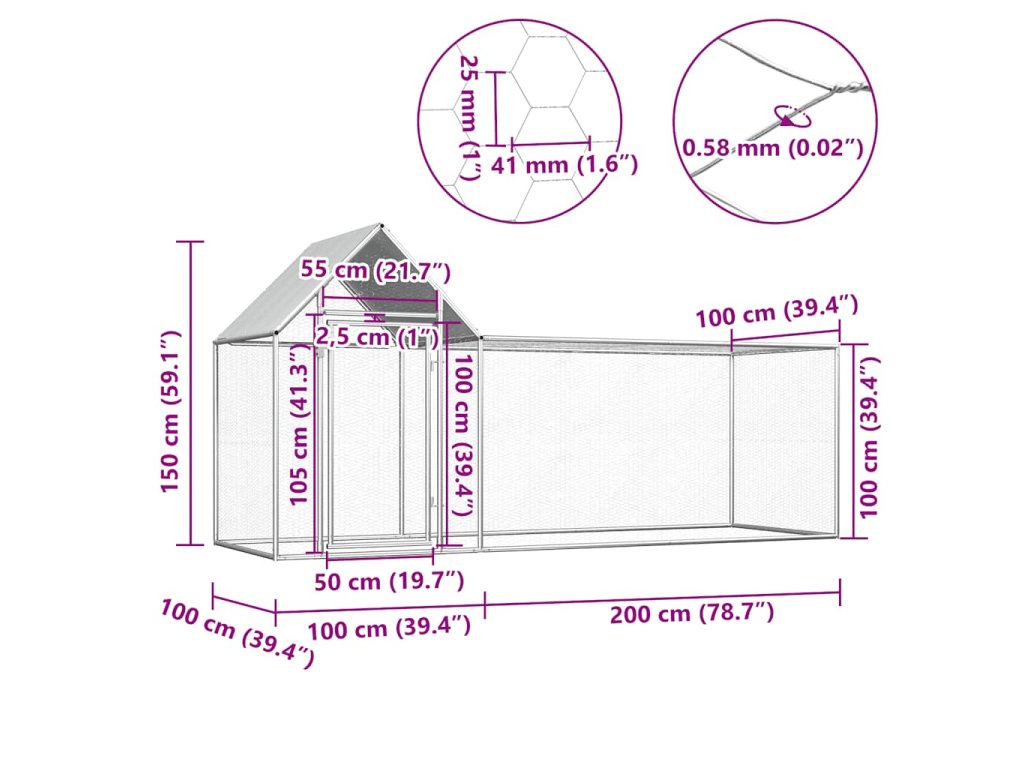 Oceľový kurník s vodotesnou strechou je odolný a bude vo vašej záhrade vyzerať skvele! Má ľahko otvárateľné uzamykateľné dvere s priloženými západkami. Navyše, vďaka drôtenej mriežke vám umožňuje sledovať vaše zvieratá. Tento produkt je potrebné zmontovať.