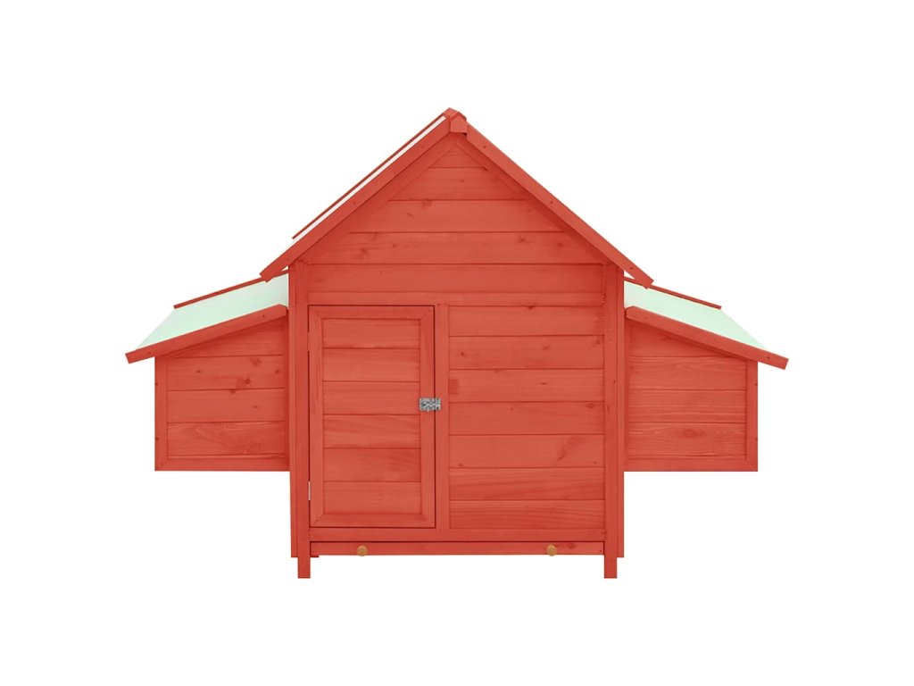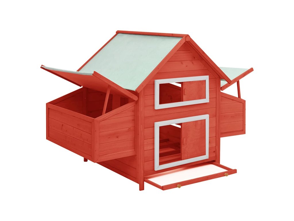 Kurník je vyrobený z masívneho jedľového dreva, je odolný a stabilný. Vodoodolná tkanina na streche zabraňuje preniknutiu dažďa a vytvára teplé a pohodlné miesto na odpočinok vo vnútri kurína.