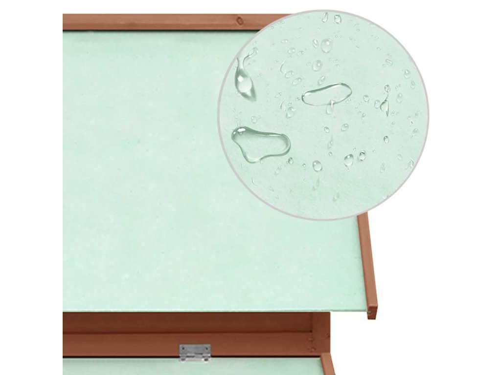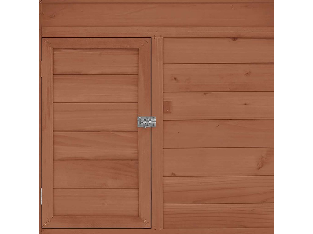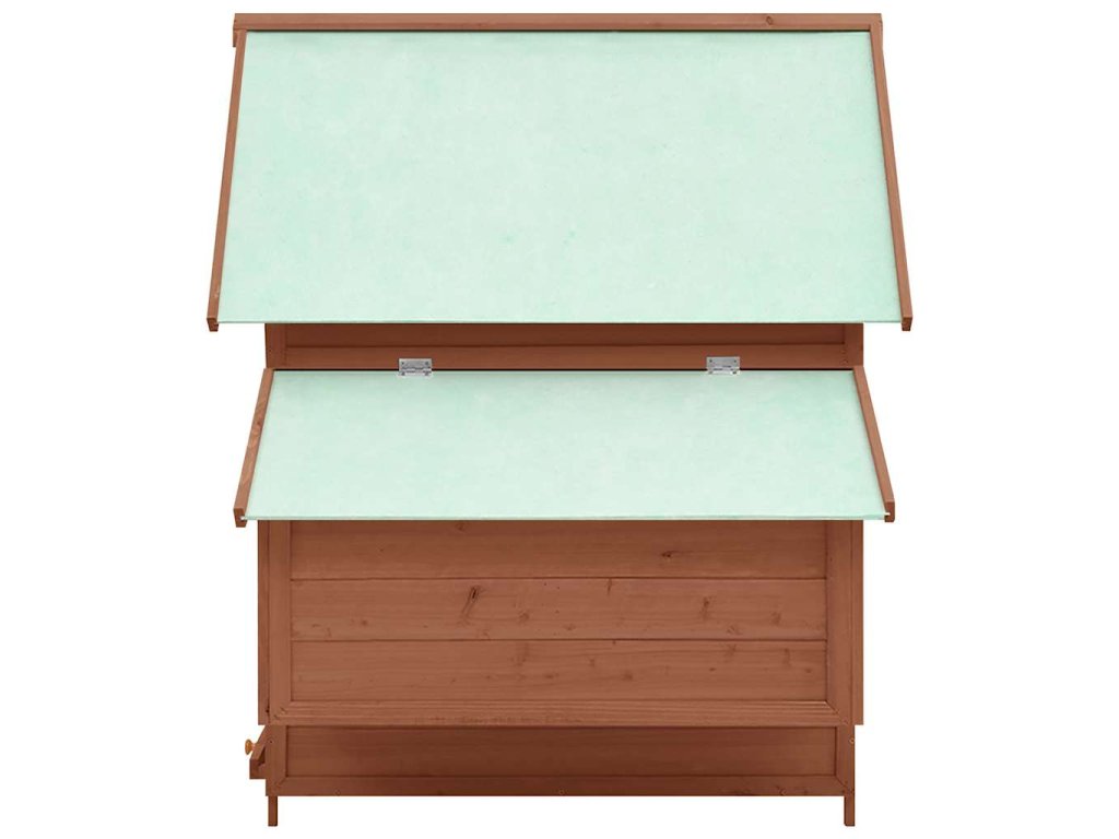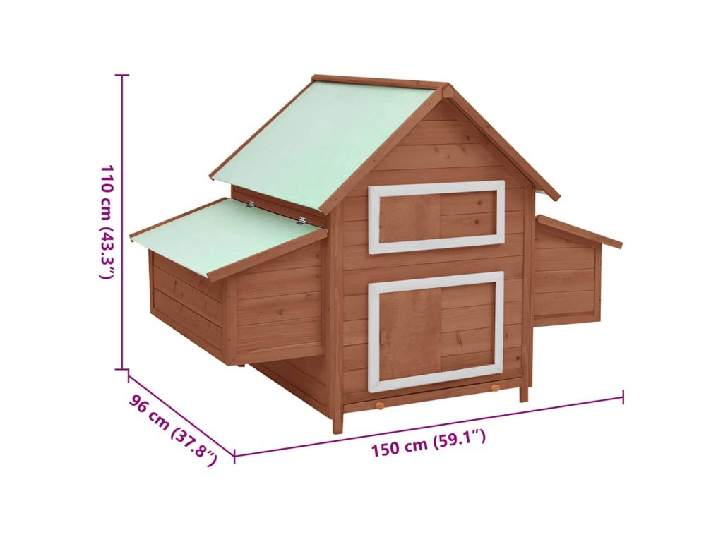 Kurník je vyrobený z masívneho jedľového dreva, je odolný a stabilný. Vodoodolná tkanina na streche zabraňuje preniknutiu dažďa a vytvára teplé a pohodlné miesto na odpočinok vo vnútri kurína.