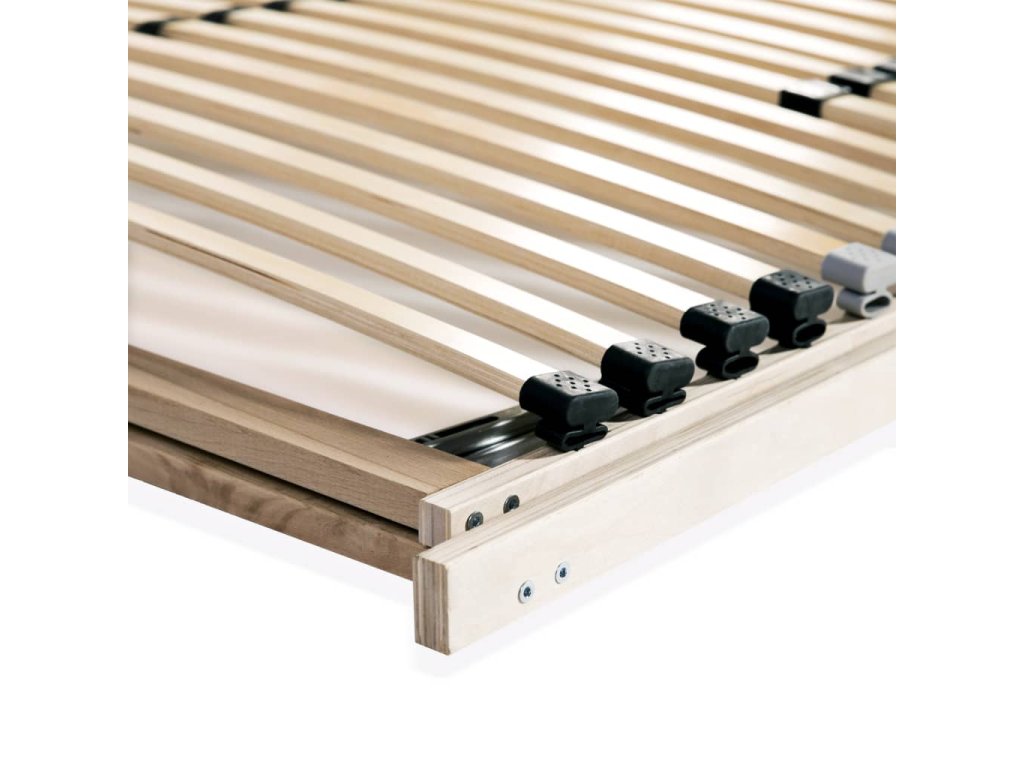 Posteľný rošt, ktorý pozostáva z rámu z bukového masívu a brezových lamiel, je pevný a odolný. 7 komfortných zón poskytuje optimálnu podporu pre vaše telo. Oba konce lamiel sú upevnené gumenými krytkami SBS pre lepšiu stabilitu celej konštrukcie. Vďaka štyrom nastaviteľným dvojitým lamelám v stredovej zóne môžete podľa potreby prispôsobiť pevnosť roštu. Časti v oblasti hlavy a chodidiel sa dajú nastaviť, a tak vám rošt poskytne pohodlie pri čítaní alebo sledovaní televízie. Montáž je jednoduchá.