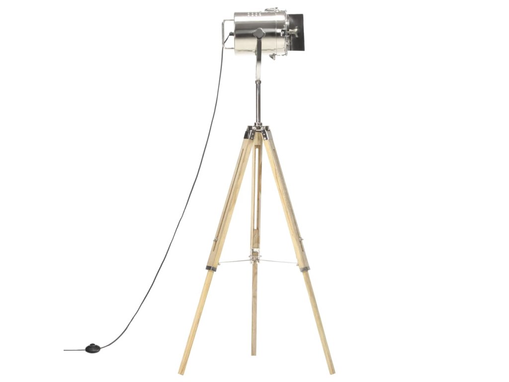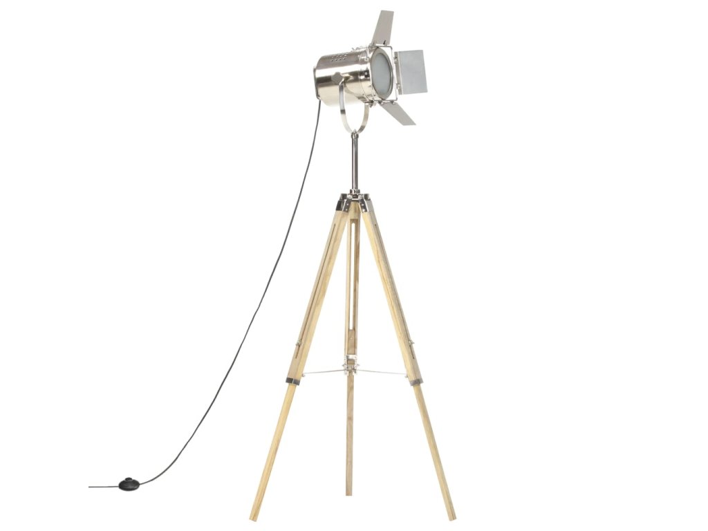 Sklopné, otočné oceľové tienidlo so striebornou povrchovou úpravou šíri teplé a atmosférické svetlo. Masívne nohy sú vyrobené z mangovníkového masívu s hnedým povrchom a zaisťujú bezpečné umiestnenie. Okrem toho je možné výšku podľa potreby nastaviť od 103 cm do 140 cm. Montáž hollywoodskej lampy je jednoduchá.