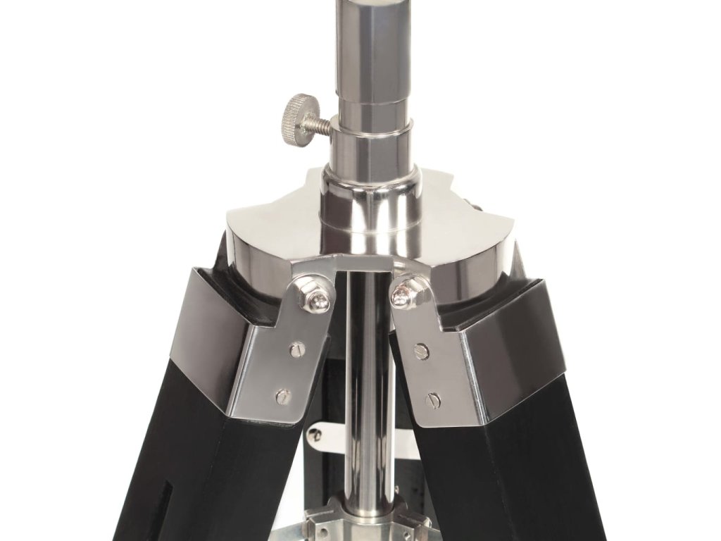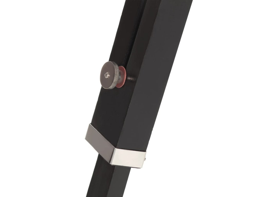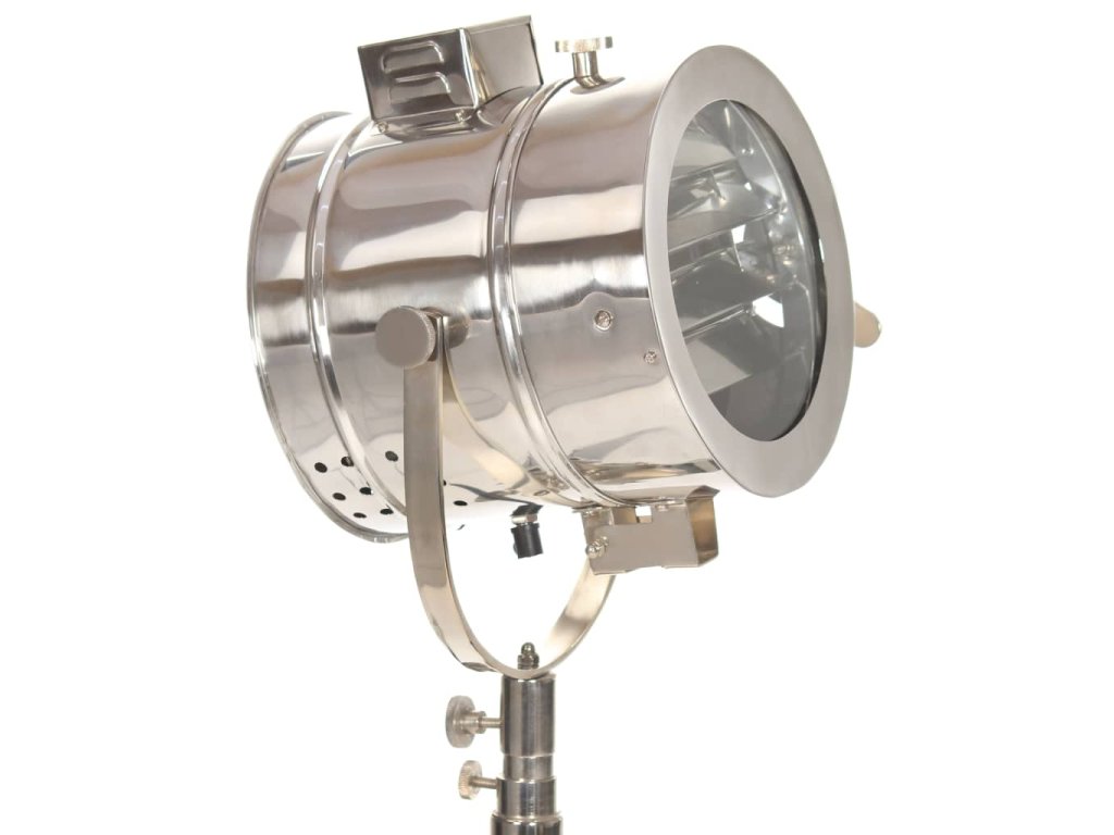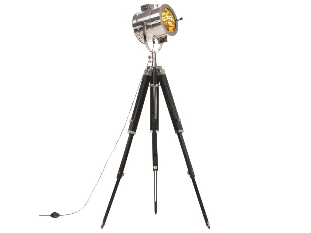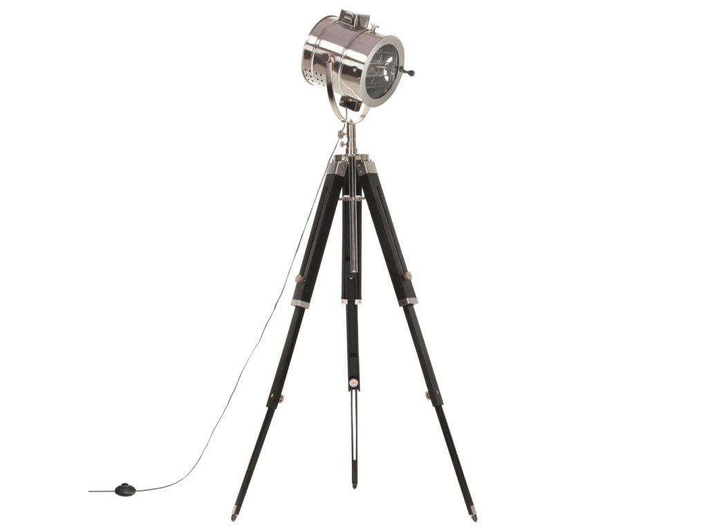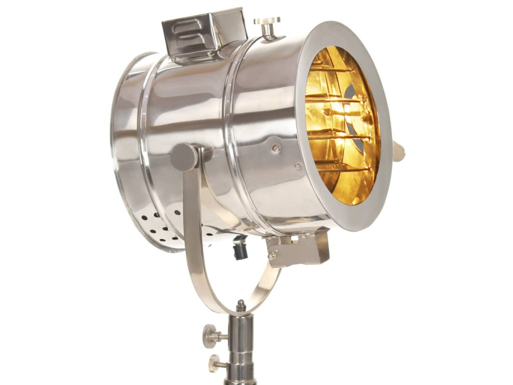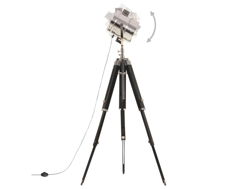 Sklopné, otočné oceľové tienidlo so striebornou povrchovou úpravou vydáva teplé a atmosférické svetlo. Masívne nohy sú vyrobené z mangovníkového masívu s čiernym povrchom a zaisťujú bezpečné umiestnenie. Okrem toho je možné výšku podľa potreby nastaviť od 95 cm do 165 cm. Montáž hollywoodskej lampy je jednoduchá.