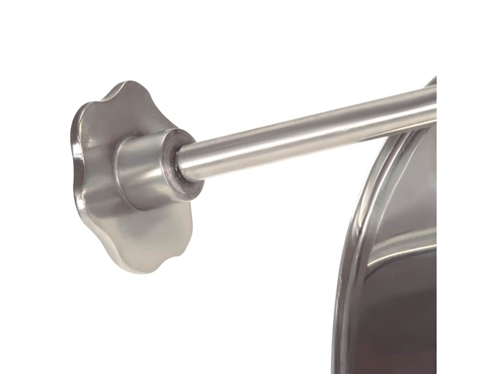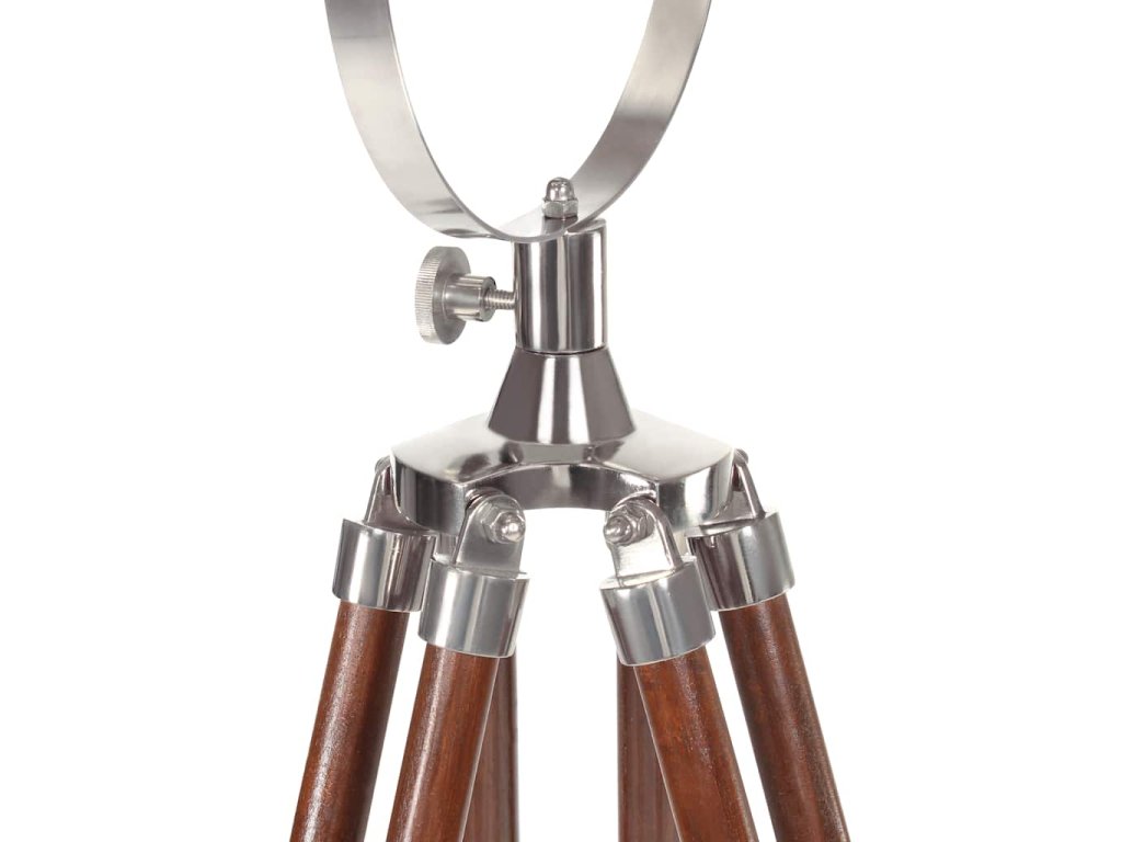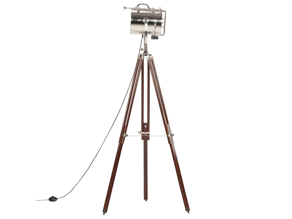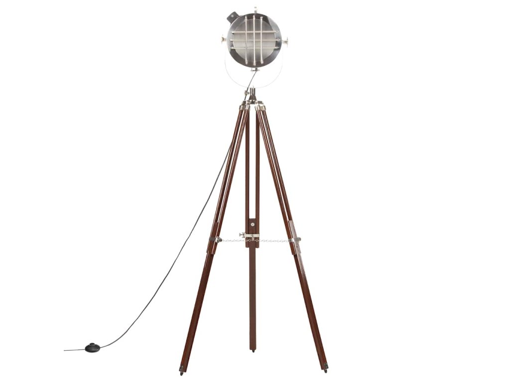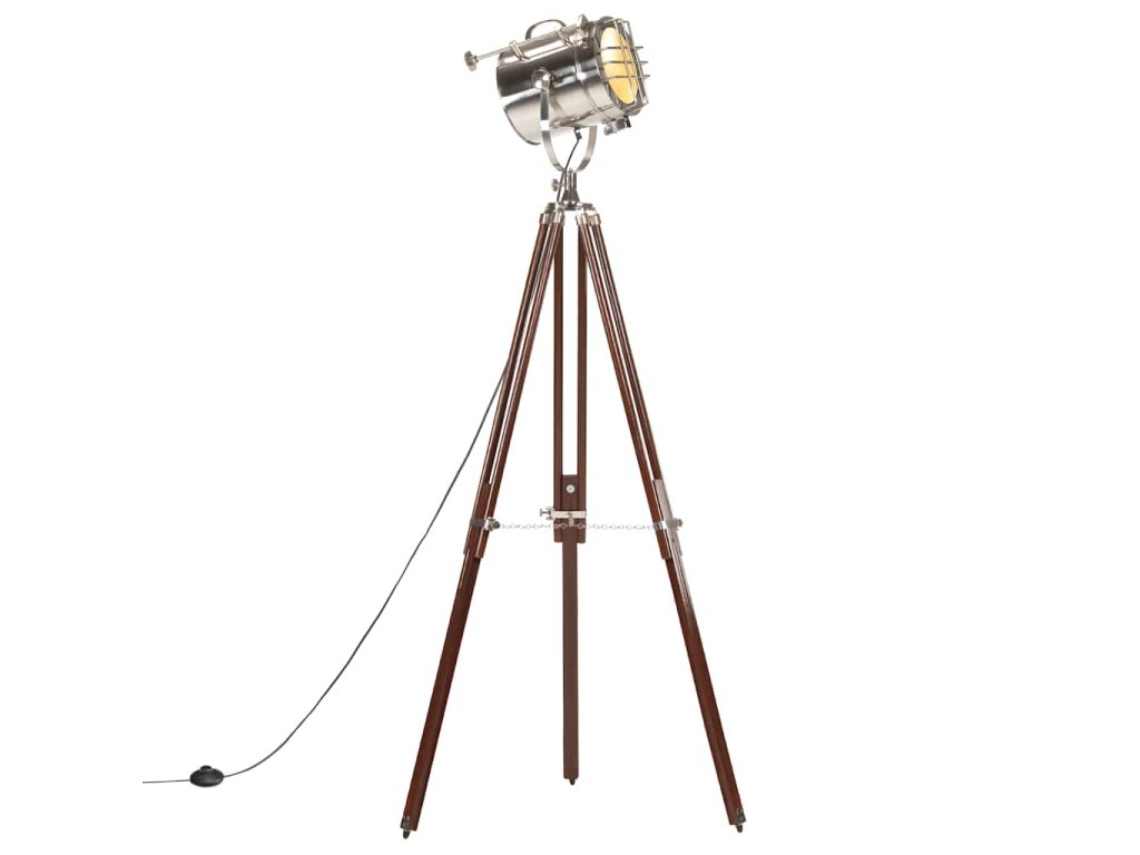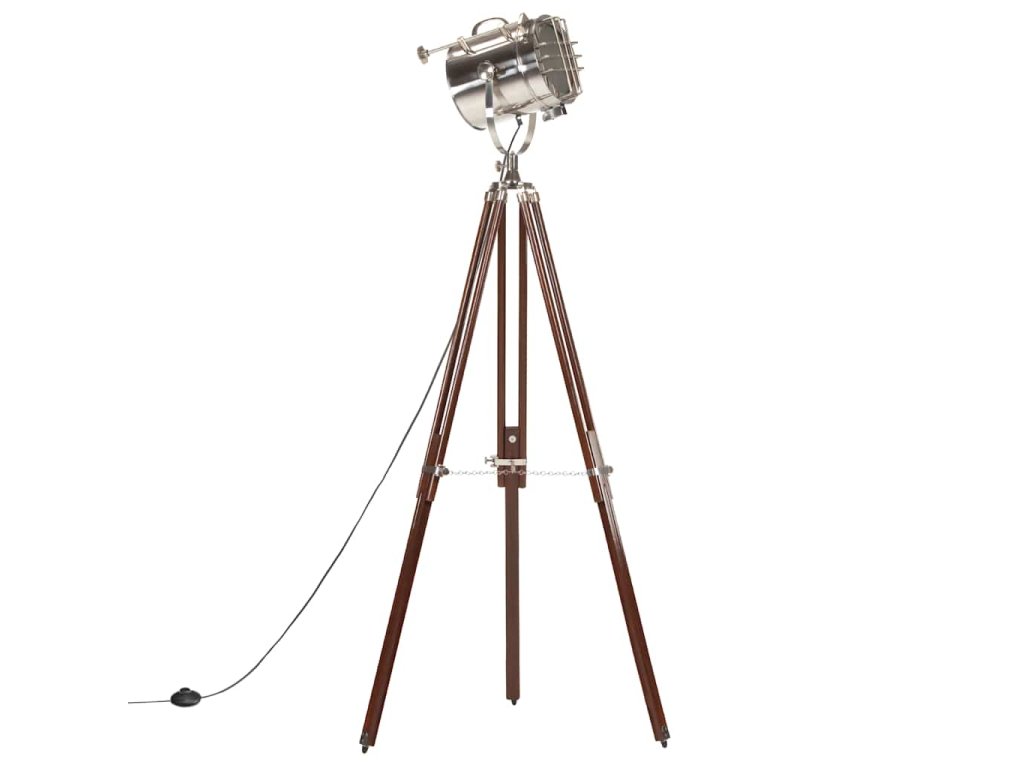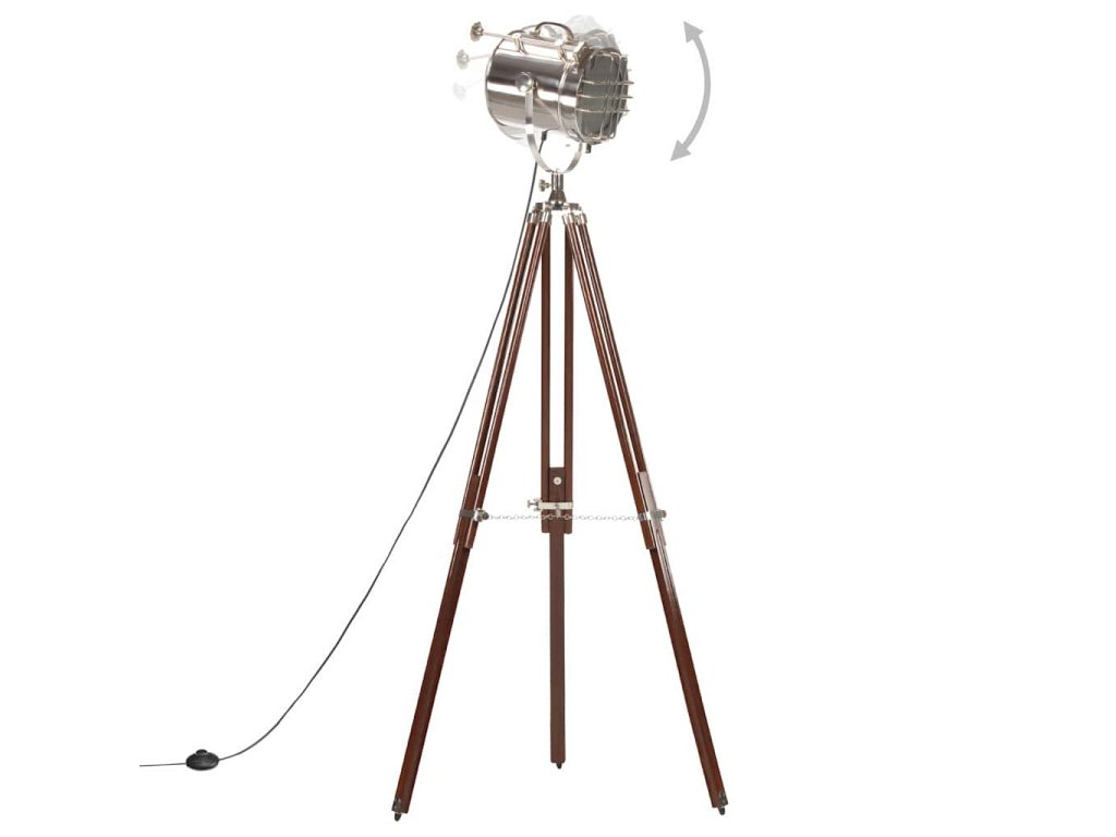 Sklopné, otočné oceľové tienidlo so striebornou povrchovou úpravou šíri teplé a atmosférické svetlo. Masívne nohy sú vyrobené z mangovníkového masívu s hnedým povrchom a zaisťujú bezpečné umiestnenie. Okrem toho je možné výšku podľa potreby nastaviť od 120 cm do 180 cm. Montáž hollywoodskej lampy je jednoduchá.