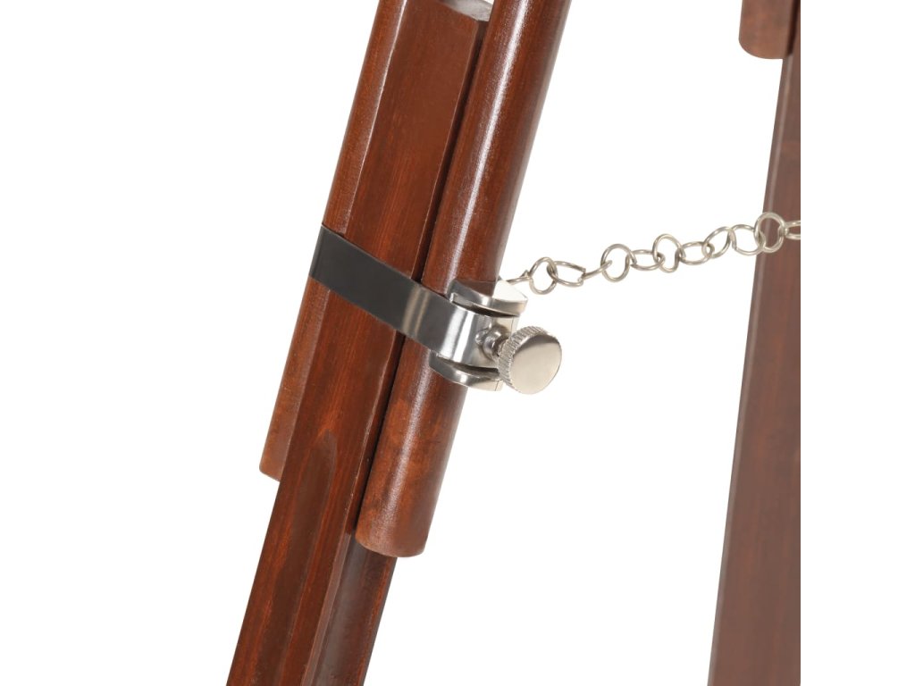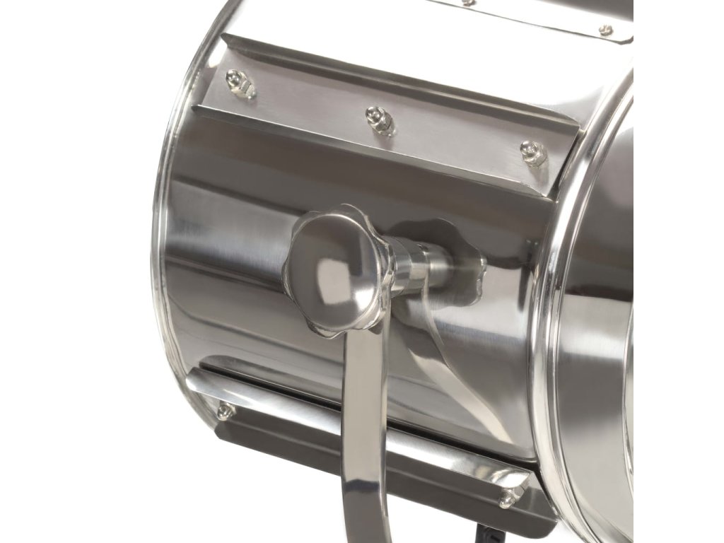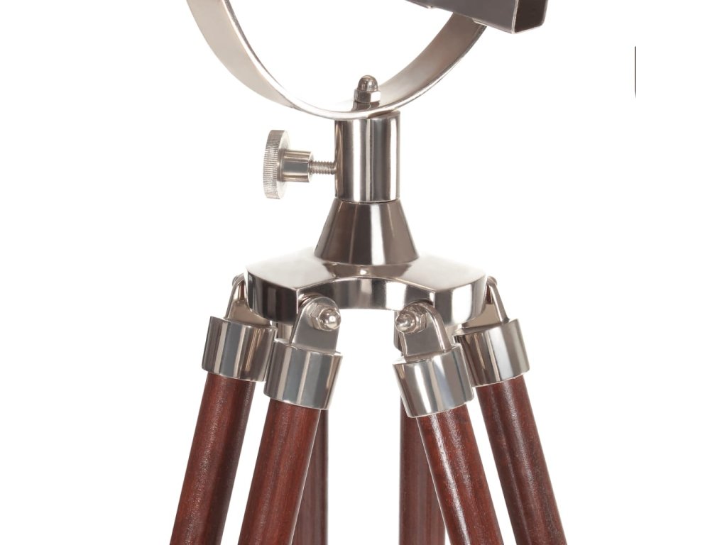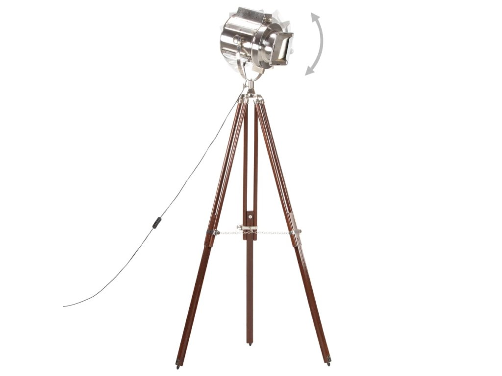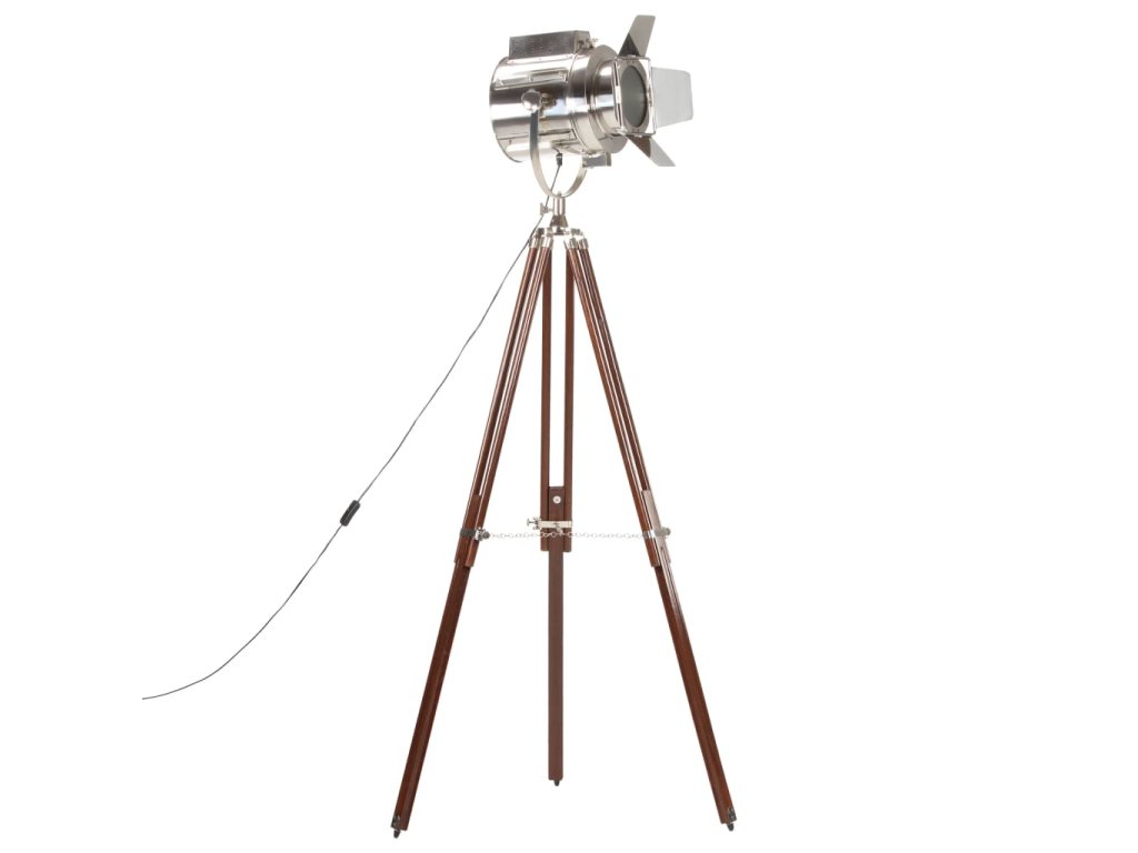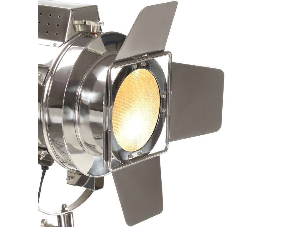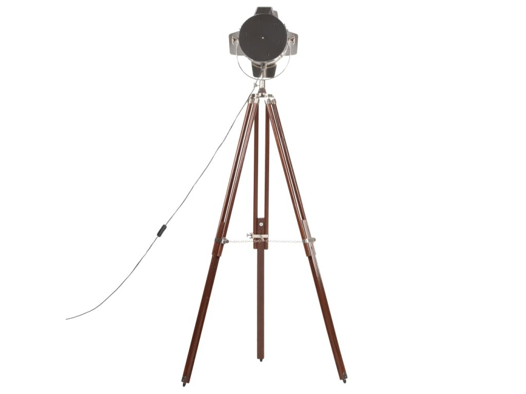 Sklopné, otočné oceľové tienidlo so striebornou povrchovou úpravou šíri teplé a atmosférické svetlo. Masívne nohy sú vyrobené z mangovníkového masívu s hnedým povrchom a zaisťujú bezpečné umiestnenie. Okrem toho je možné výšku podľa potreby nastaviť od 120 cm do 180 cm. Montáž hollywoodskej lampy je jednoduchá.