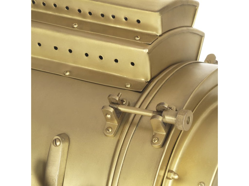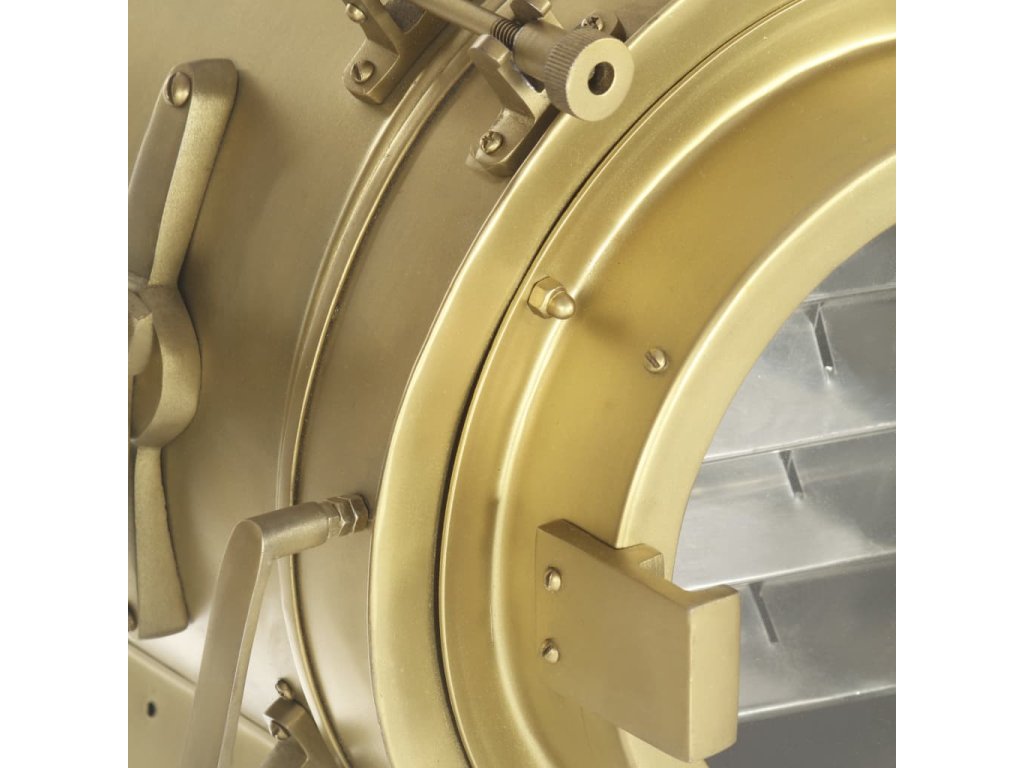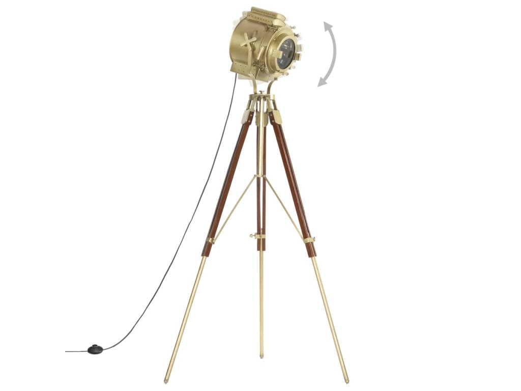 Sklopné, otočné oceľové tienidlo s mosadznou povrchovou úpravou vydáva teplé a atmosférické svetlo. Pevné nohy sú vyrobené z mangovníkového masívu s hnedým povrchom a zaisťujú stabilitu. Okrem toho je možné výšku podľa potreby nastaviť od 137 cm do 193 cm. Montáž hollywoodskej lampy je jednoduchá.