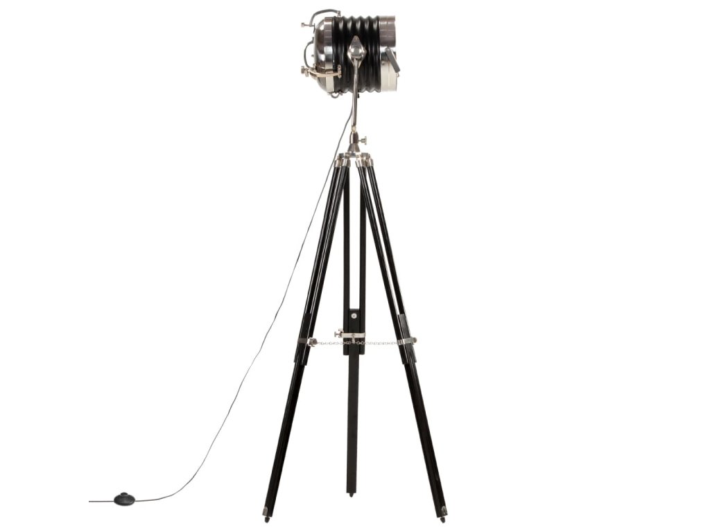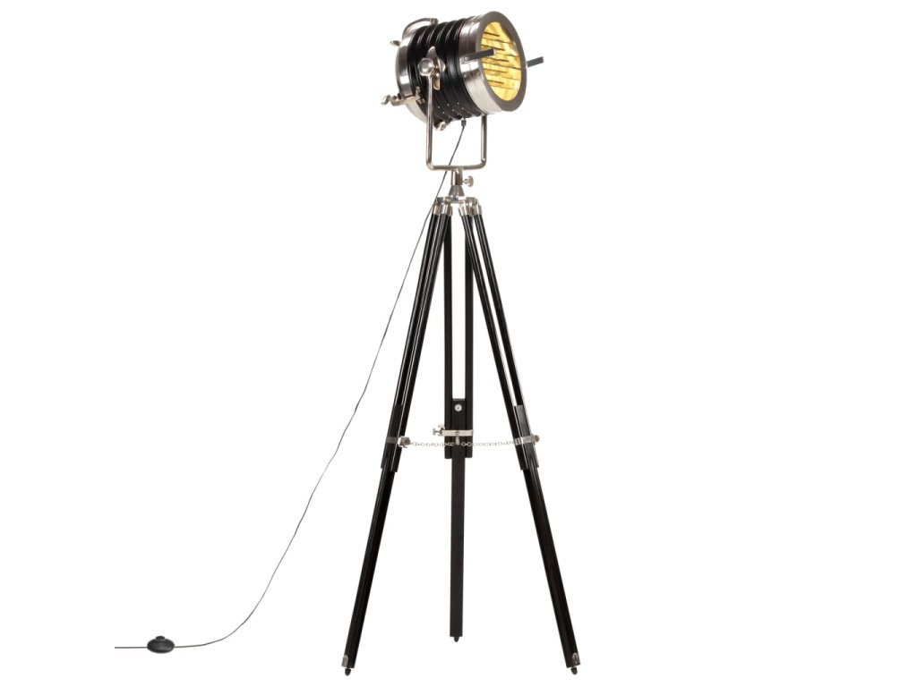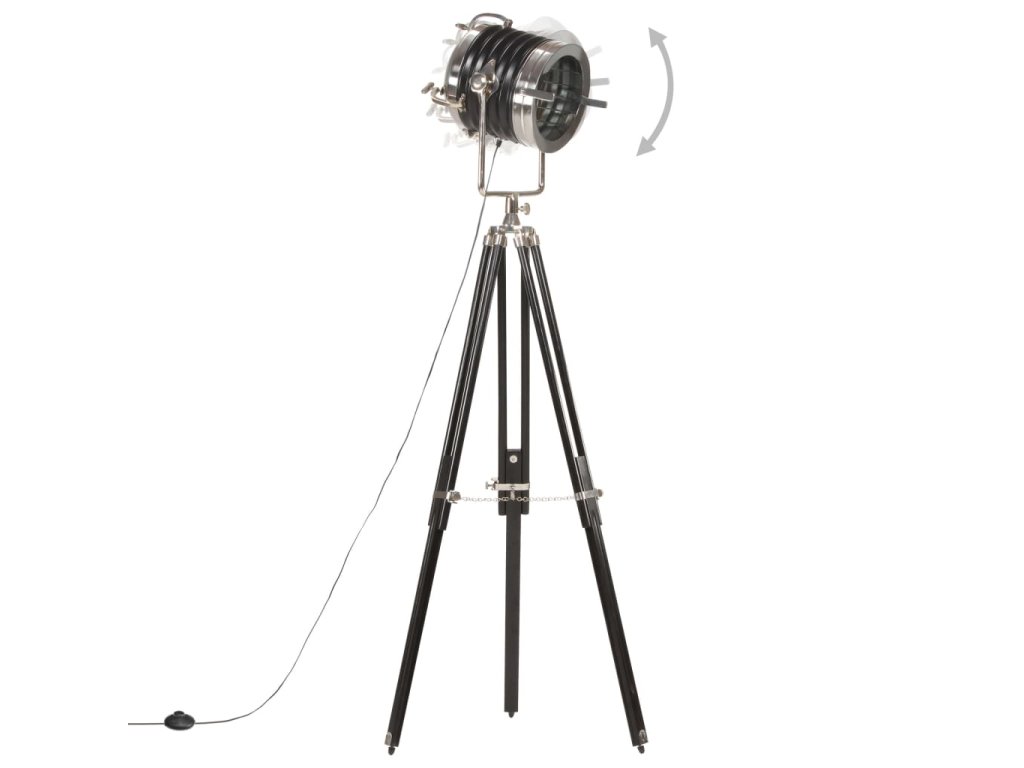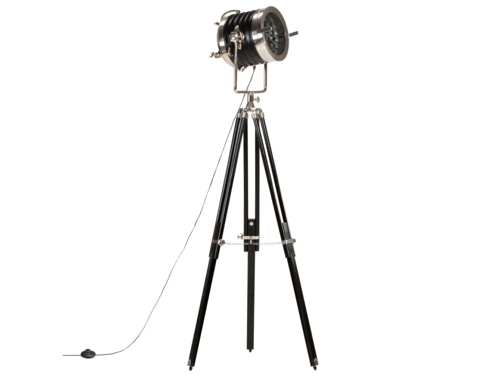 Sklopné, otočné oceľové tienidlo so striebornou a čiernou povrchovou úpravou šíri teplé a atmosférické svetlo. Masívne nohy sú vyrobené z mangovníkového masívu s čiernym povrchom zaisťujú bezpečné umiestnenie. Okrem toho je možné výšku podľa potreby nastaviť od 117 cm do 171 cm. Montáž hollywoodskej lampy je jednoduchá.