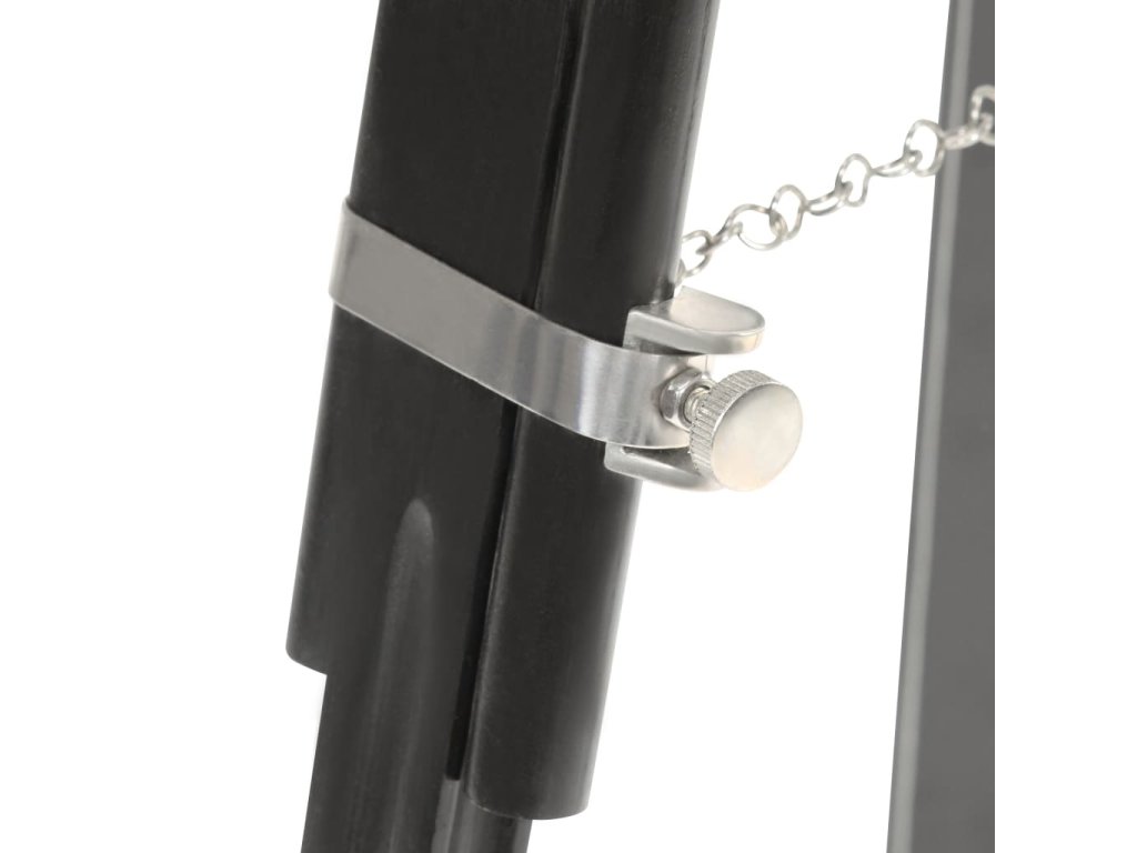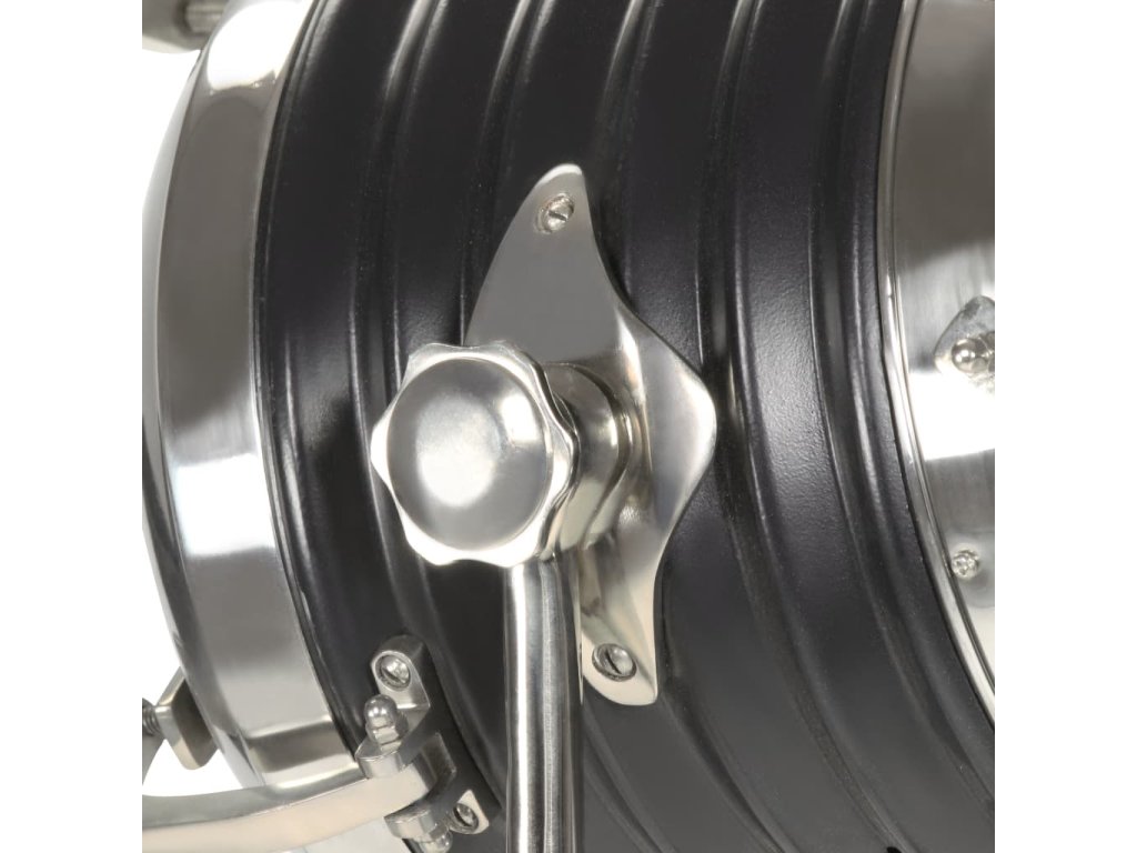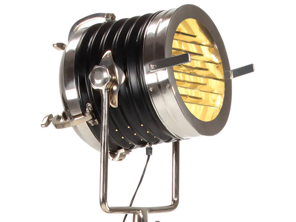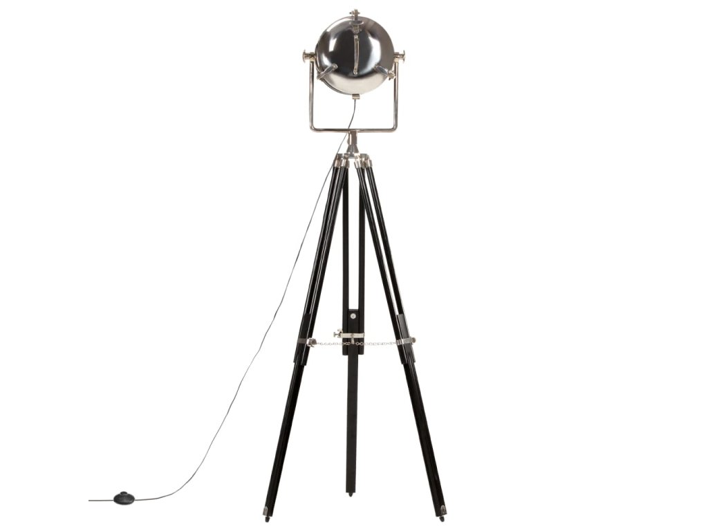 Sklopné, otočné oceľové tienidlo so striebornou a čiernou povrchovou úpravou šíri teplé a atmosférické svetlo. Masívne nohy sú vyrobené z mangovníkového masívu s čiernym povrchom zaisťujú bezpečné umiestnenie. Okrem toho je možné výšku podľa potreby nastaviť od 117 cm do 171 cm. Montáž hollywoodskej lampy je jednoduchá.
