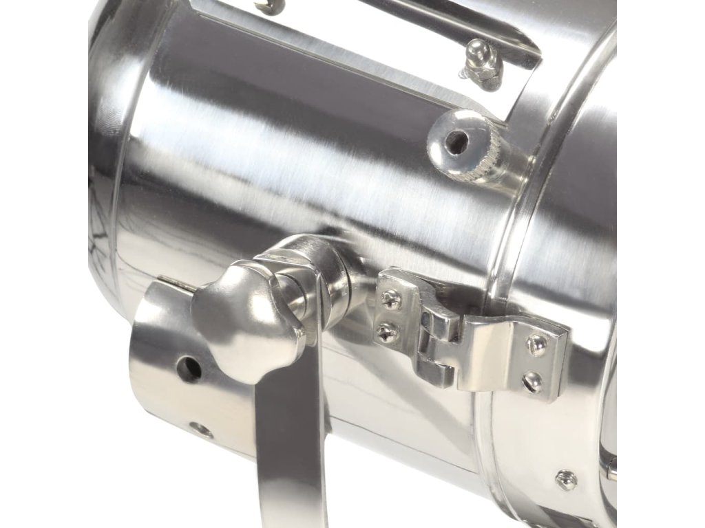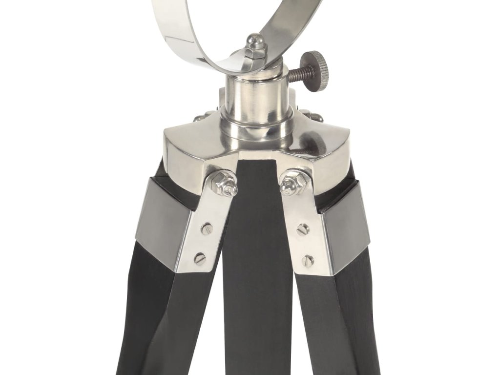 Sklopné, otočné oceľové tienidlo so striebornou povrchovou úpravou šíri teplé a atmosférické svetlo. Masívne nohy sú vyrobené z mangovníkového masívu s čiernym povrchom a zaisťujú bezpečné umiestnenie. Montáž hollywoodskej lampy je jednoduchá.