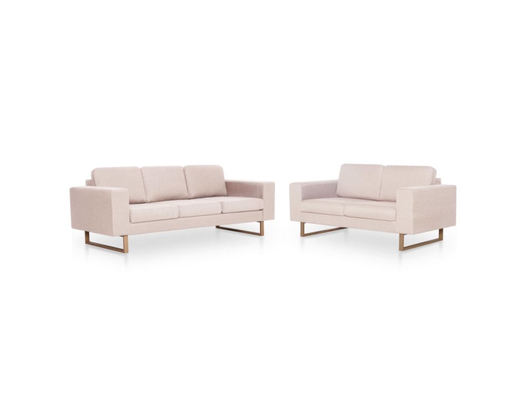 Pohovky poskytnú široký priestor na sedenie a husto čalúnené vankúše zaručia optimálne pohodlie. Sú potiahnuté jemnou látkou, ktorá je veľmi odolná. Poťahy vankúšov sa dajú ľahko očistiť, pretože ich môžete jednoducho zvliecť a oprať v práčke. Vďaka pevnému drevenému rámu má pohovka pevnú konštrukciu.