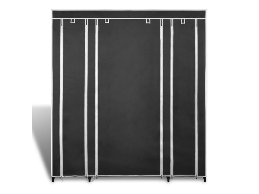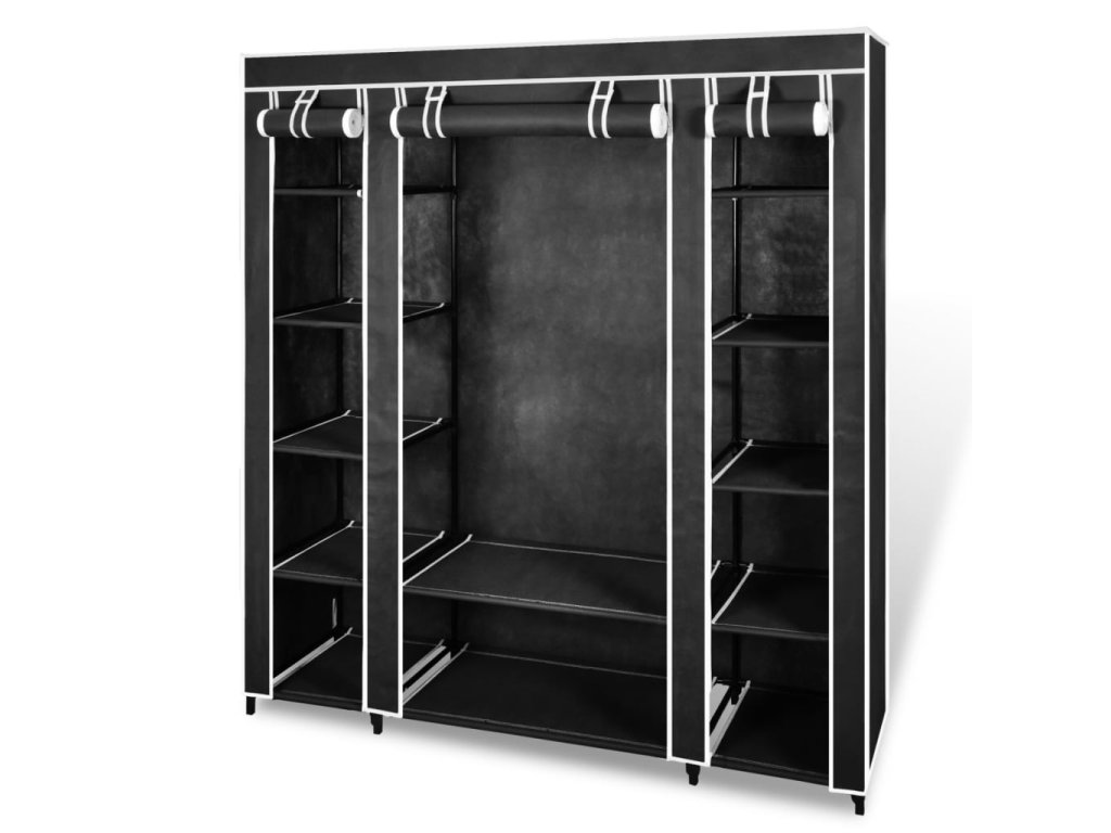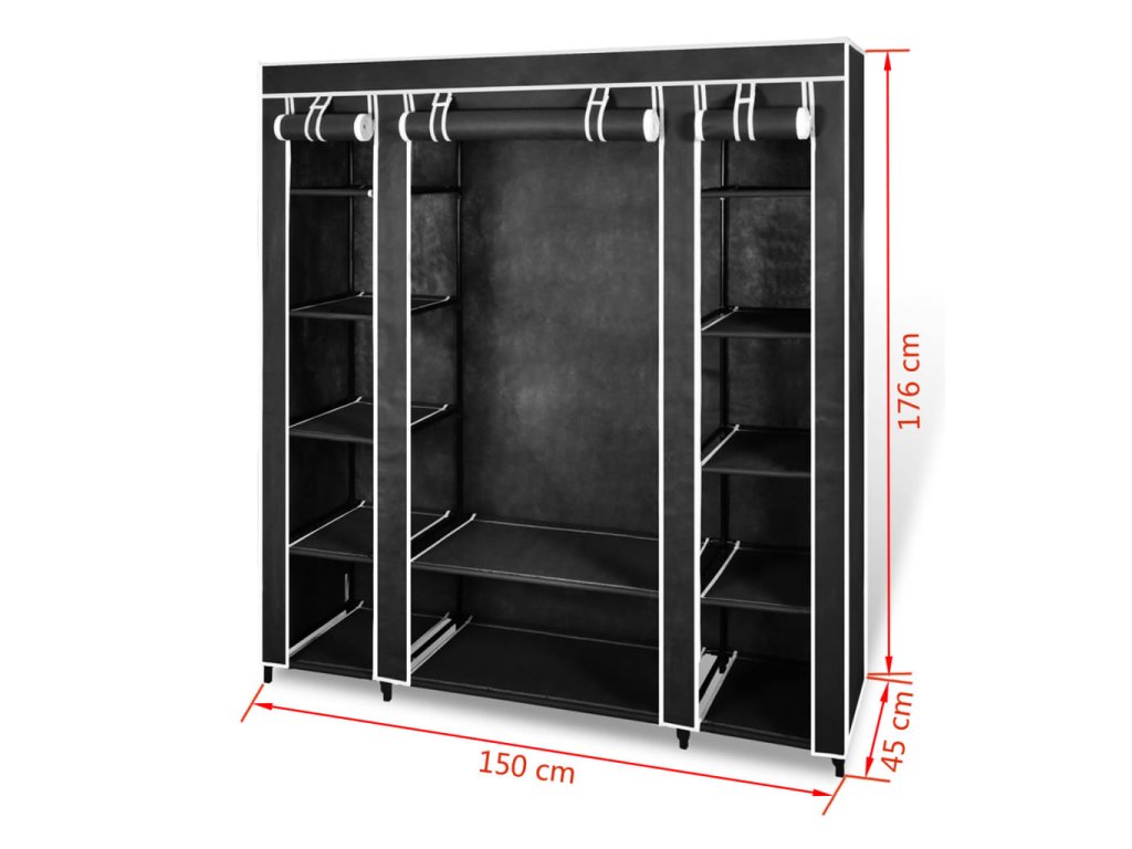 Táto prenosná skrinka je navrhnutá tak, aby ochránila vaše oblečenie a topánky pred nečistotami a prachom, či už ju umiestnite do pivnice, detskej izby, do spálne, na povalu alebo si ju so sebou zoberiete na stanovačku. V skrinke nájdete niekoľko priečinkov a tyčí. Rolovacie dvierka sa upevňujú na suchý zips a dajú sa otvoriť a zatvoriť pomocou normálneho zipsu.