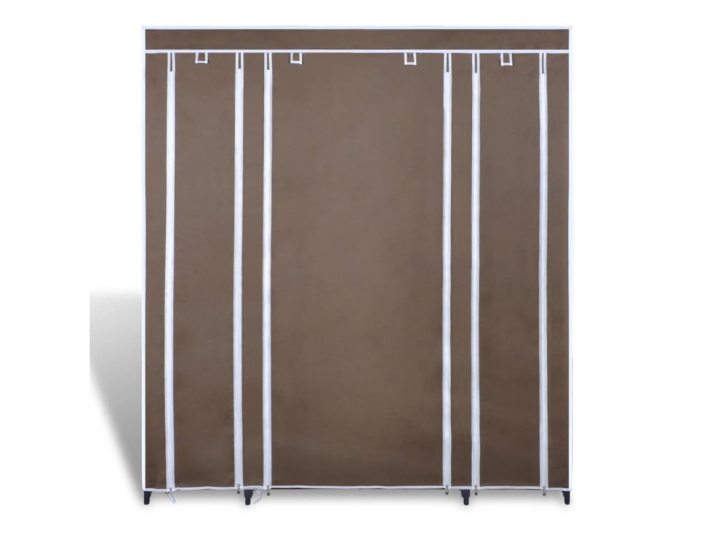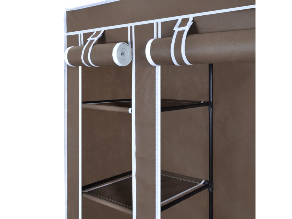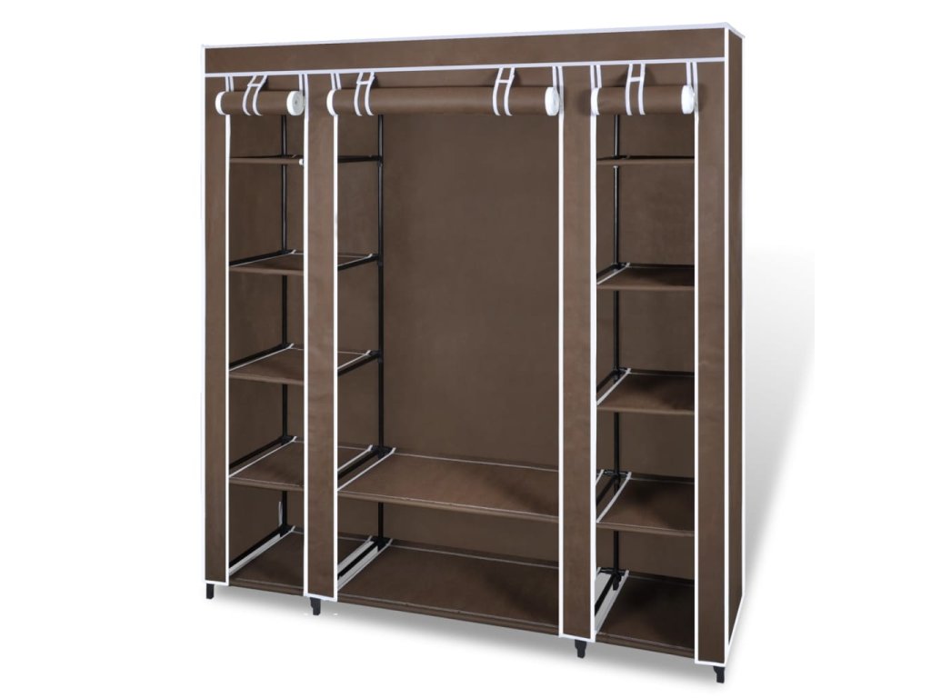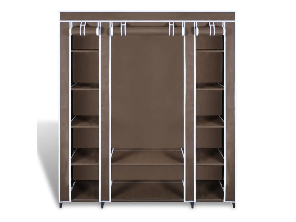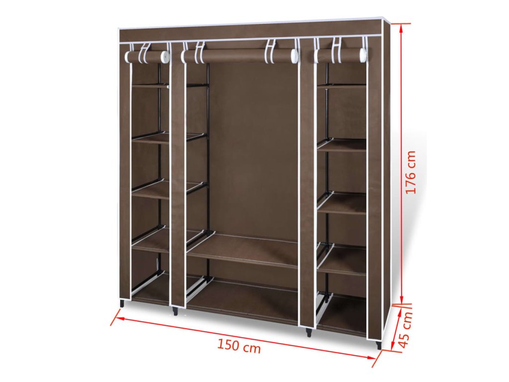 Táto prenosná skrinka je navrhnutá tak, aby ochránila vaše oblečenie a topánky pred nečistotami a prachom, či už ju umiestnite do pivnice, detskej izby, do spálne, na povalu alebo si ju so sebou zoberiete na stanovačku. V skrinke nájdete niekoľko priečinkov a tyčí. Rolovacie dvierka sa upevňujú na suchý zips a dajú sa otvoriť a zatvoriť pomocou normálneho zipsu.