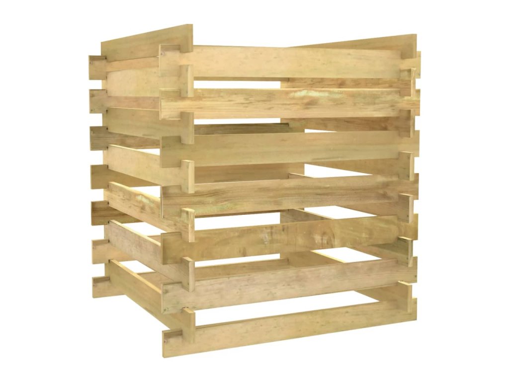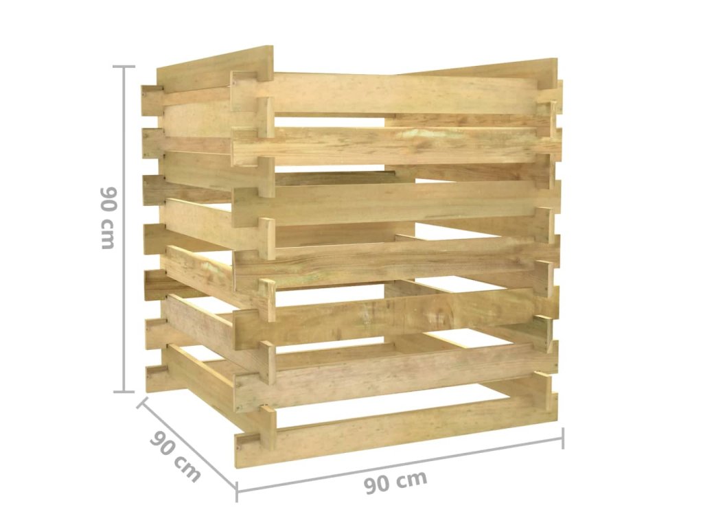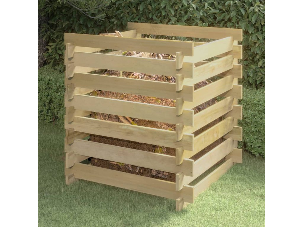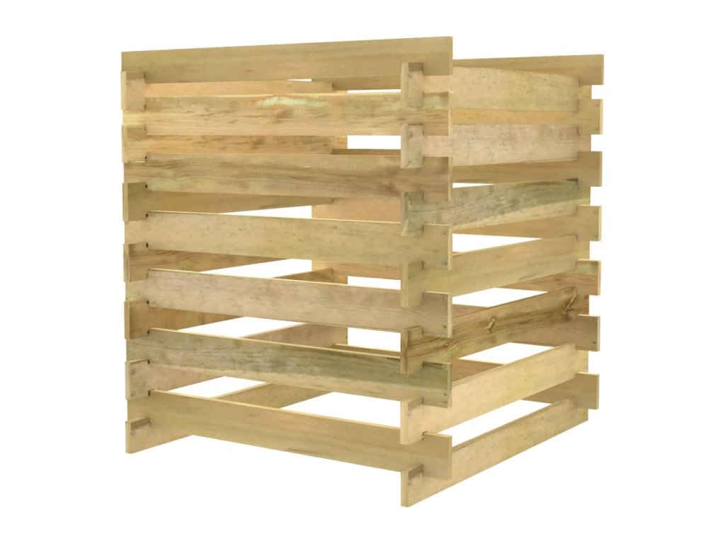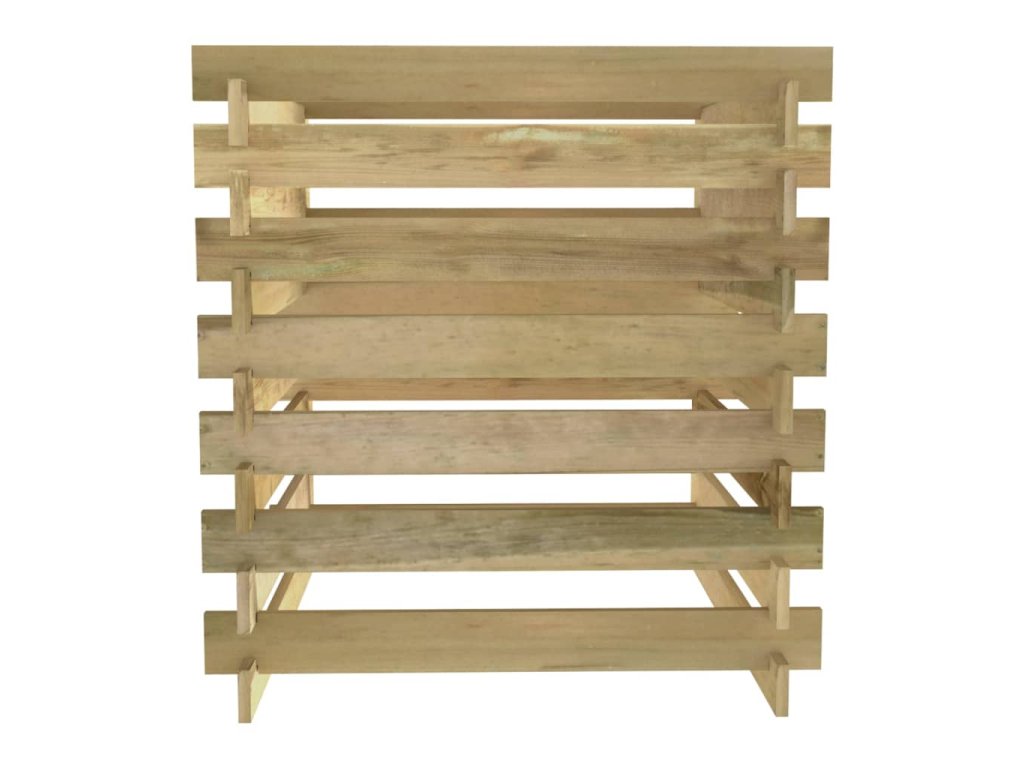 Záhradný kompostér má latkový dizajn, ktorý zaisťuje dobrú cirkuláciu vzduchu pri kompostovaní a premieňa organický odpad na užitočný kompost bohatý na živiny. Je vyrobený z borovicového masívu. Impregnované borovicové drevo je trvácne a odolné voči poveternostným vplyvom a korózii, vďaka čomu je vhodné na každodenné používanie v exteriéri. Kôš na kompost poskytuje ideálne riešenie na zber záhradného odpadu.