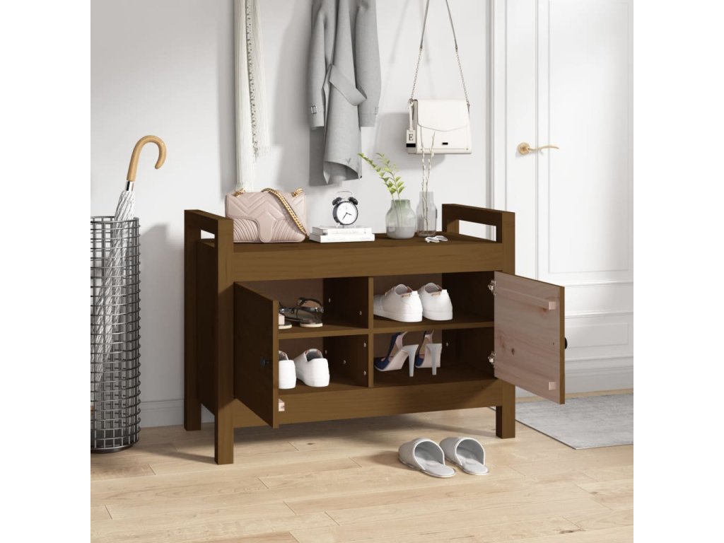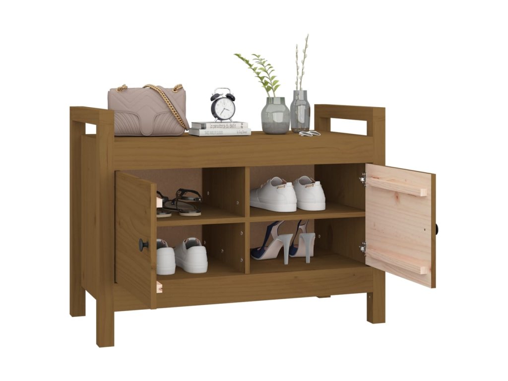 - Dostatok úložného priestoru: Vďaka priečinkom s dvierkami poskytuje táto lavica dostatok priestoru na uloženie oblečenia, kníh, topánok alebo osobných vecí. Lavica do predsiene je teda ideálna na to, aby bola vaša chodba, vstupný priestor alebo iné obytné priestory upratané.