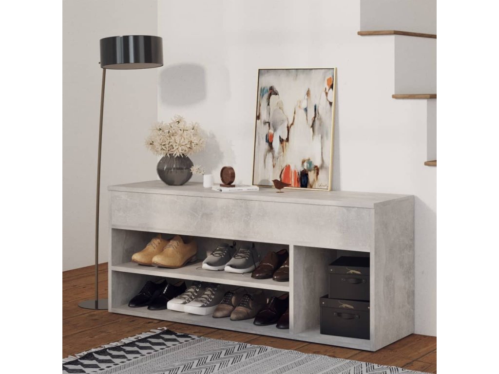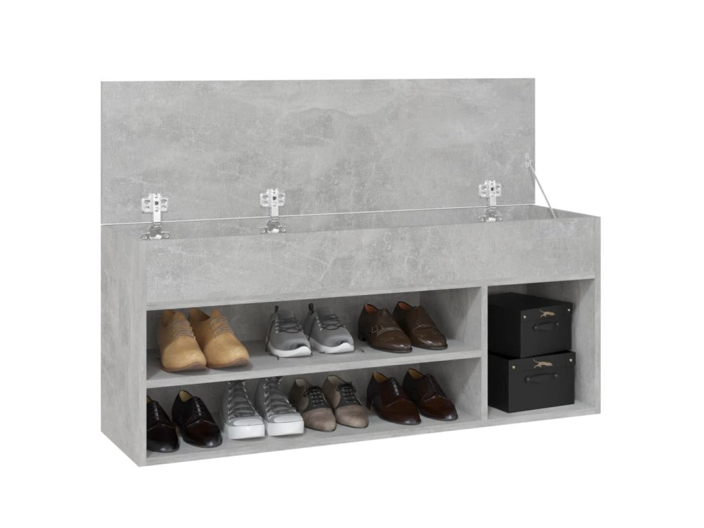 Skrinka na topánky poskytuje dostatok priestoru na uloženie topánok. Pozostáva z 2 políc, priehradky na pravej strane a truhlice na uloženie kníh, obuvákov, kefiek a pod. Pri vyzúvaní alebo ukladaní topánok si môžete sadnúť na jej hladkú vrchnú časť. Môžete tam uložiť aj niektoré dekoratívne predmety, ako sú vázy, rastliny v črepníkoch atď. Táto odkladacia lavica je veľmi praktickým miestom na štýlové a prehľadné uloženie obuvi.