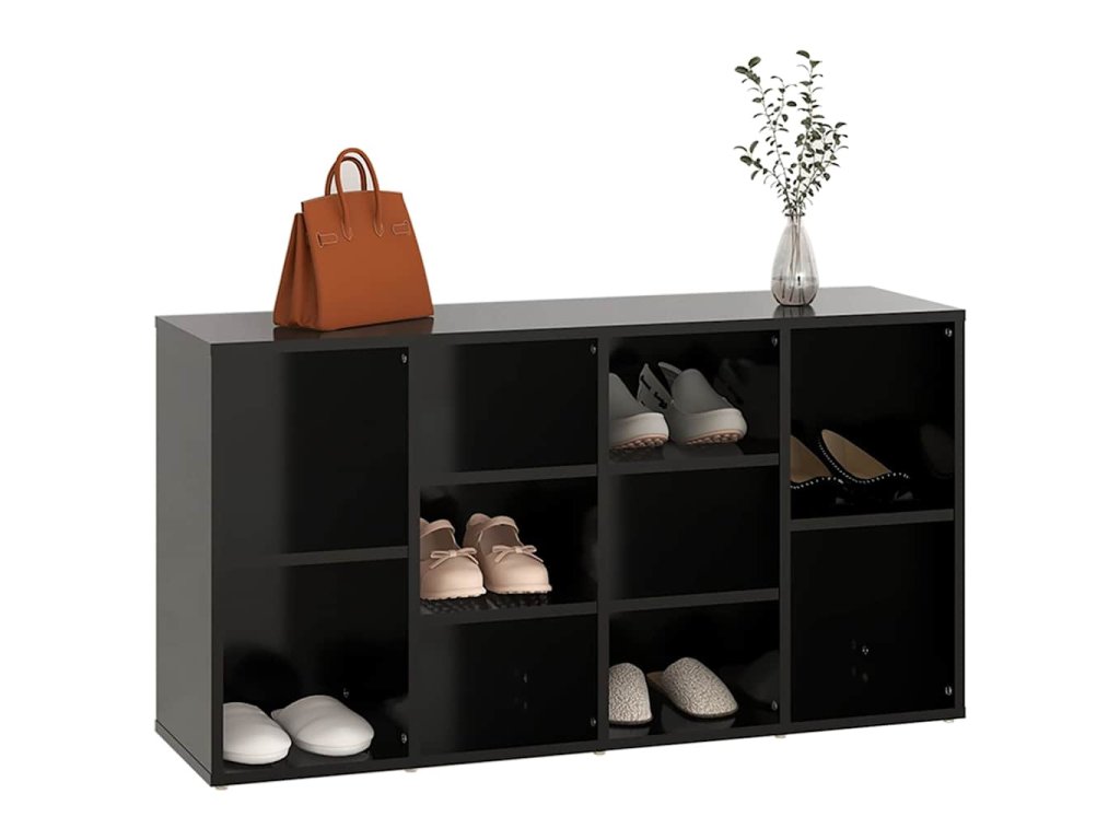 Skrinka na topánky má 10 políc, ktoré ponúkajú dostatok priestoru na uloženie obuvi. Robustná vrchná časť je ideálna na uloženie vašich nevyhnutných vecí alebo iných dekoratívnych predmetov. Organizéri obuvi sa navyše ľahko čistí vlhkou handričkou.