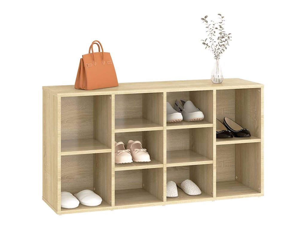 Skrinka na topánky má 10 políc, ktoré ponúkajú dostatok priestoru na uloženie obuvi. Robustná vrchná časť je ideálna na uloženie vašich nevyhnutných vecí alebo iných dekoratívnych predmetov. Organizéri obuvi sa navyše ľahko čistí vlhkou handričkou.