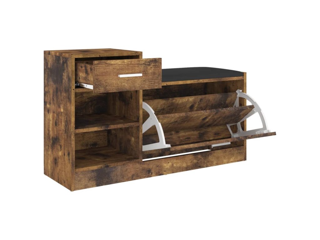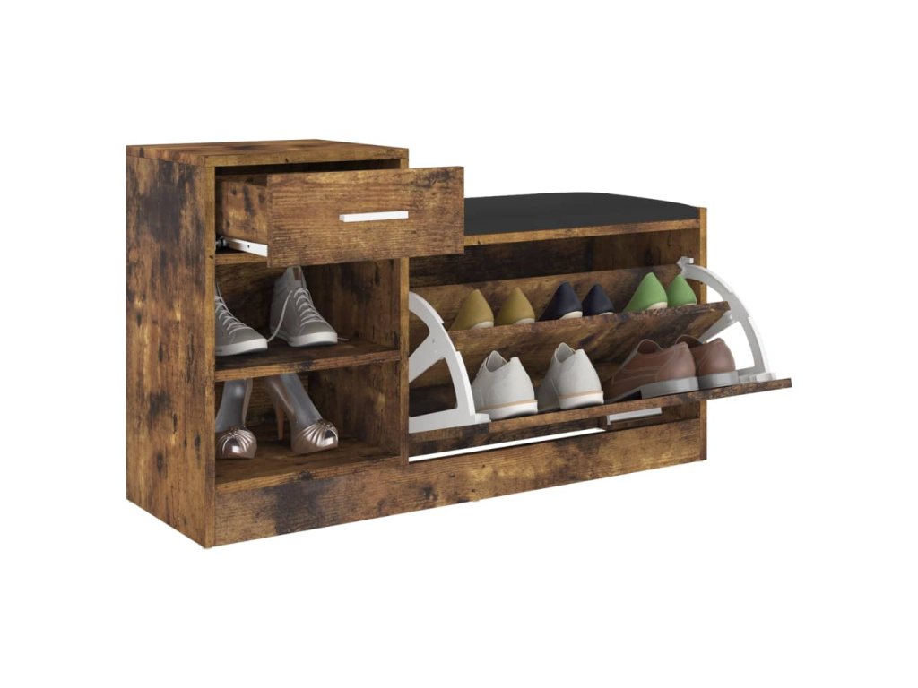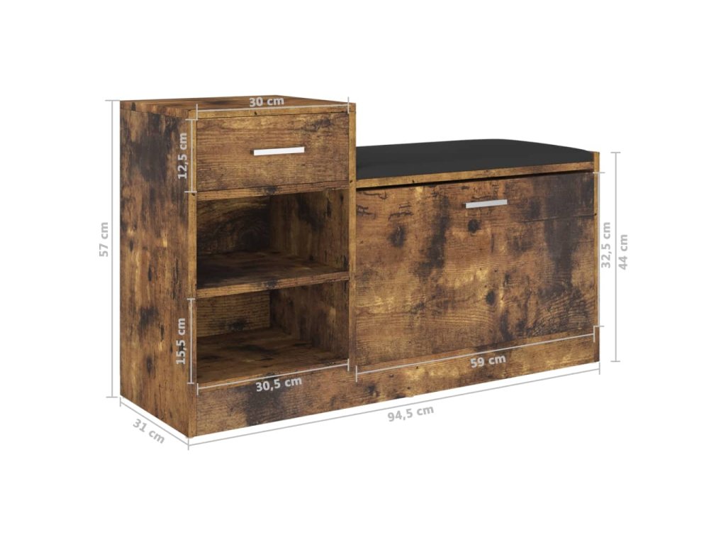 Skrinka na topánky je vyrobená z kompozitného dreva, ktoré jej dodáva rafinovaný vzhľad a potrebnú stabilitu a trvácnosť. Sedadlo z umelej kože sa dá ľahko očistiť a poskytne vám pohodlné miesto na sedenie pri obúvaní a vyzúvaní topánok. Úložná lavička poskytuje dostatok úložného priestoru, a tak predstavuje ideálny doplnok do chodby, haly či iných obytných priestorov.