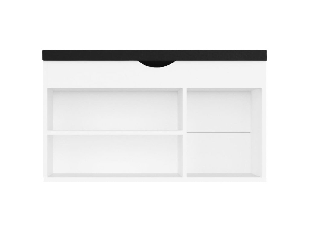 Skriňa na topánky ponúka dostatok priestoru na uloženie topánok. Stabilná horná časť s odnímateľným vankúšom vám umožní pohodlne si na ňu sadnúť počas obúvania alebo vyzúvania topánok. Okrem toho sa organizér na topánky ľahko čistí vlhkou handričkou. Táto odkladacia lavica predstavuje vysoko praktické miesto na prehľadné uloženie topánok vo veľkom štýle a bez neporiadku.