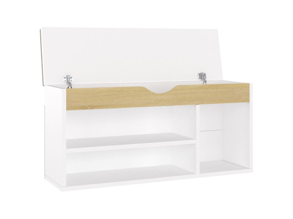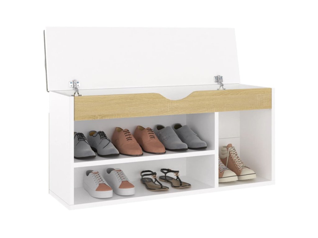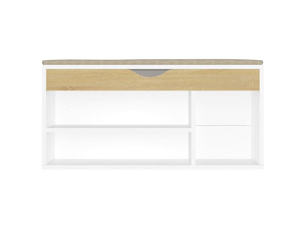 Skriňa na topánky ponúka dostatok priestoru na uloženie topánok. Stabilná horná časť s odnímateľným vankúšom vám umožní pohodlne si na ňu sadnúť počas obúvania alebo vyzúvania topánok. Okrem toho sa organizér na topánky ľahko čistí vlhkou handričkou. Táto odkladacia lavica predstavuje vysoko praktické miesto na prehľadné uloženie topánok vo veľkom štýle a bez neporiadku.