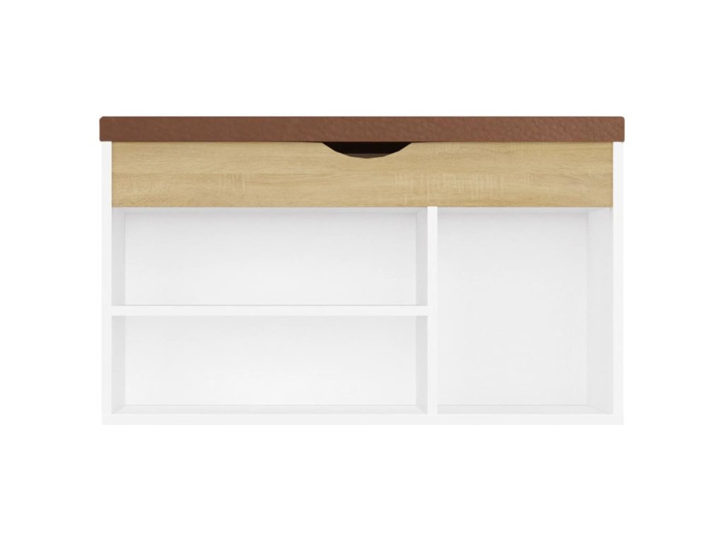 Skriňa na topánky ponúka dostatok priestoru na uloženie topánok. Stabilná horná časť s odnímateľným vankúšom vám umožní pohodlne si na ňu sadnúť počas obúvania alebo vyzúvania topánok. Okrem toho sa organizér na topánky ľahko čistí vlhkou handričkou. Táto odkladacia lavica predstavuje vysoko praktické miesto na prehľadné uloženie topánok vo veľkom štýle a bez neporiadku.