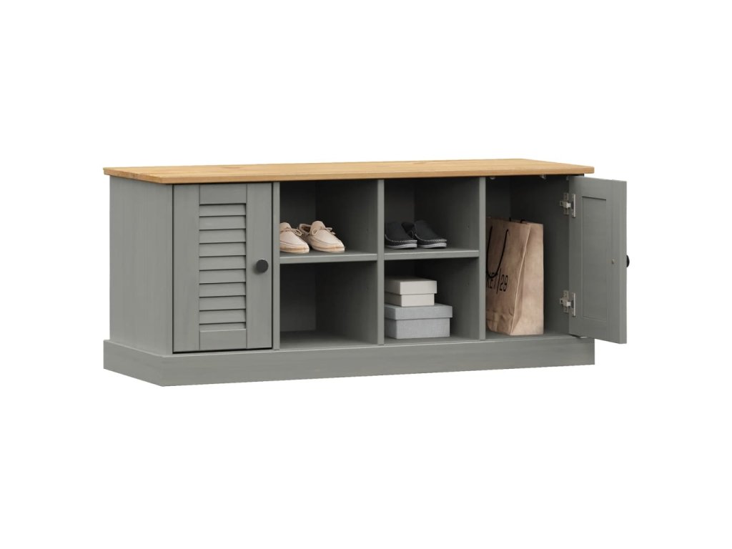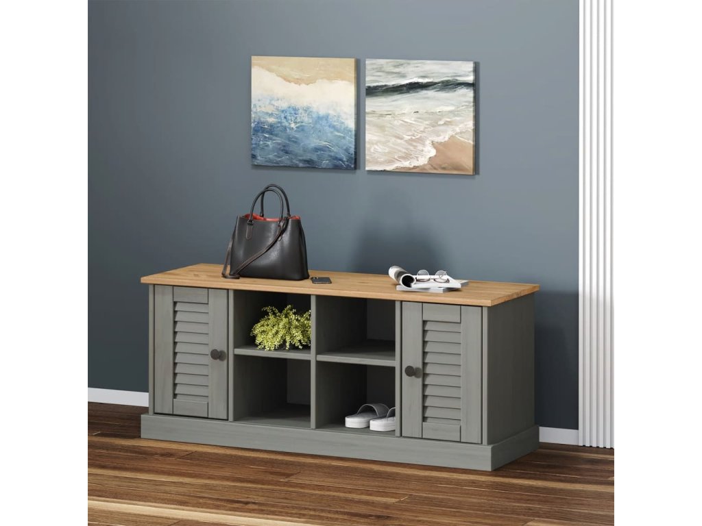 - Borovicový masív: Borovicový masív je krásny prírodný materiál. Borovicové drevo má rovnú kresbu a nachádzajú sa na ňom hrče, ktoré tomuto materiálu dodávajú charakteristický rustikálny vzhľad. Úložný priestor na topánky je vyrobený z masívneho borovicového dreva a je odolný a pevný.