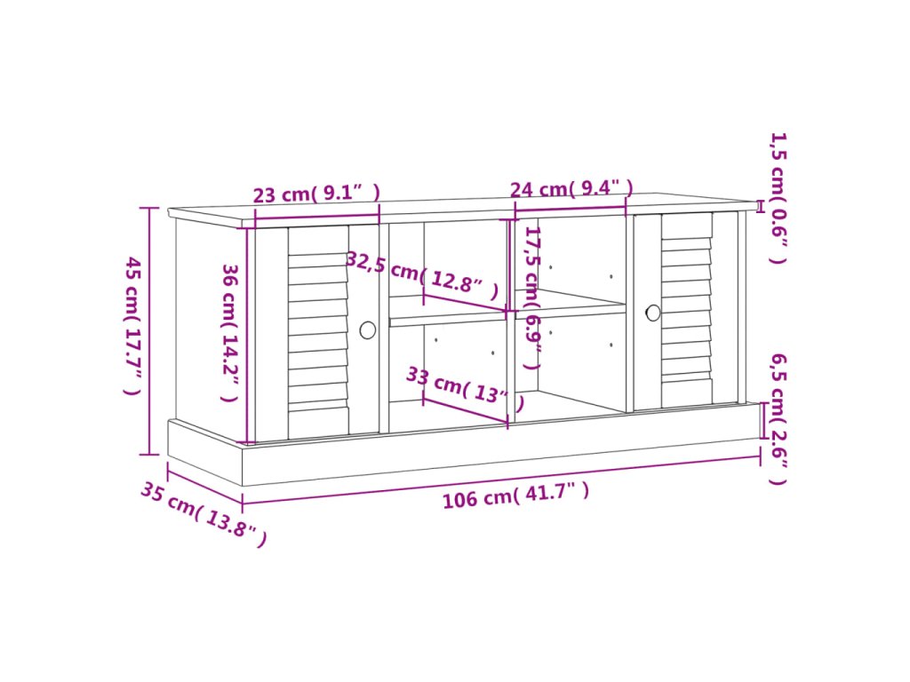 - Rozmery malého spodného priečinka: 24 x 33 x 17,5 cm (Š x H x V)