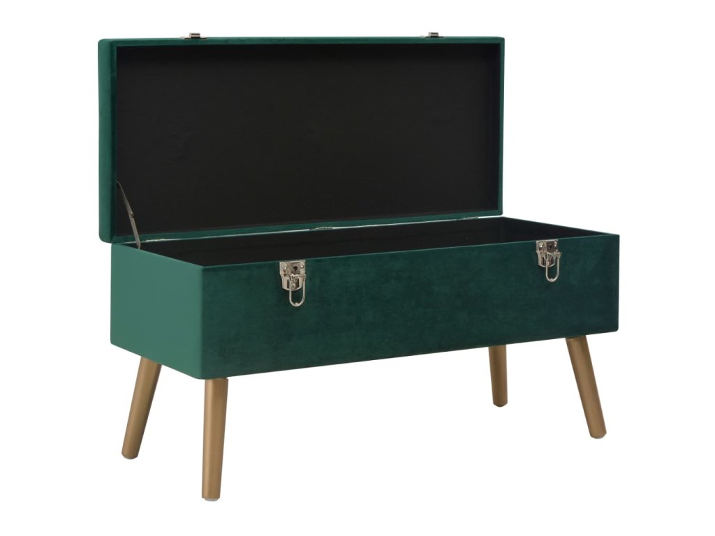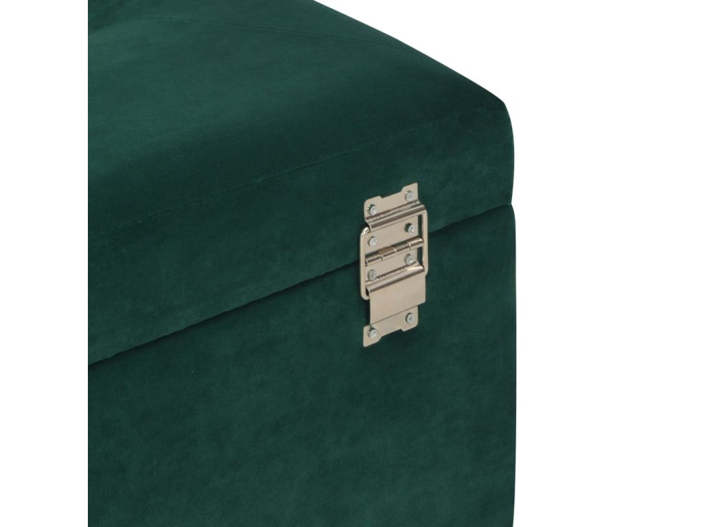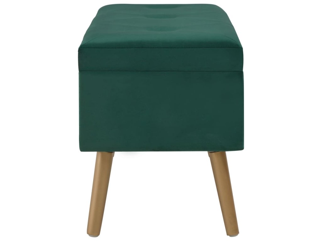 Zelený zamatový poťah je mäkký na dotyk a veľmi príjemný. Do vášho interiéru vnesie poriadnu dávku farby. Lavička má vnútorný úložný priečinok, ktorý vám poskytne dodatočný priestor na odkladanie rôznych predmetov. Drevené nohy so zlatým náterom lavičke okrem toho dodávajú potrebnú stabilitu a trvácnosť. Naša lavička predstavuje okúzľujúci ozdobný doplnok do vašich obytných priestorov a stane sa nepostrádateľnou súčasťou vašej izby.