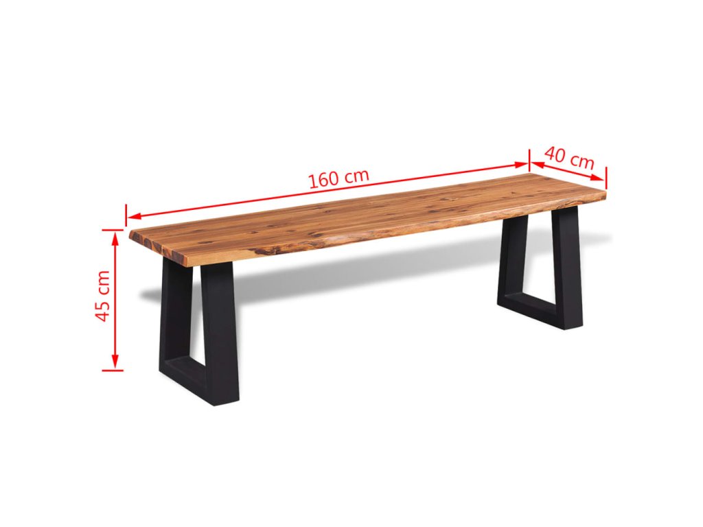 - Materiál: Akáciový masív s olejovým náterom (vrchná doska lavičky) + kovové nohy s práškovou povrchovou úpravou