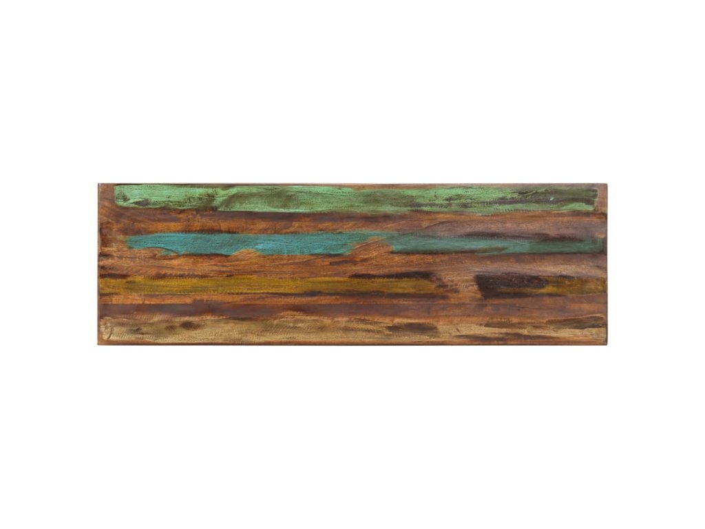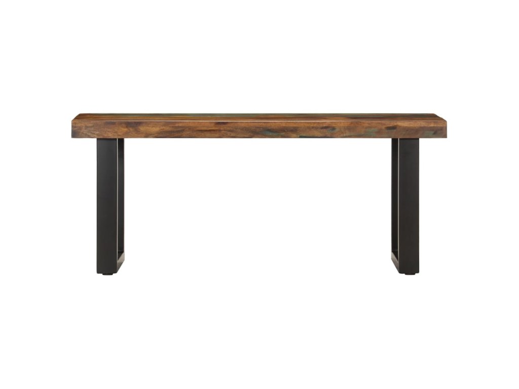 Vrchná časť lavičky je vyrobená z recyklovaného masívu, ktorý pochádza z trámov, podláh a nosníkov zo starých zbúraných stavieb a pozostáva z rôznych typov dreva, ako napríklad tíkového, tvrdého, tropického či mangového dreva. Recyklované drevo sa preto vyznačuje vlastnosťami týchto typov dreva. Recyklované drevo je staré, zvetrané a usušené, a preto sa nezmršťuje ani neohýba. Vďaka krásnej textúre dreva je každý kus nábytku jedinečný a trochu odlišný od ostatných. Oceľové nohy s práškovou povrchovou úpravou lavičke prinášajú potrebnú stabilitu a zároveň umocujú jej industriálny vzhľad. Lavička do chodby sa jednoducho montuje.