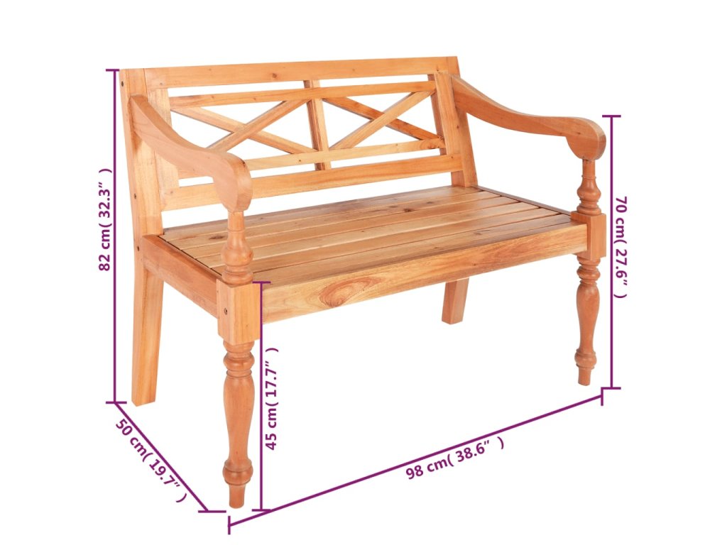 Vysokokvalitná lavička s elegantne zaoblenými opierkami na ruky je vyrobená z mahagónového masívu, ktorý je veľmi stabilný a trvácny. Je naozaj pevná a dá sa ľahko očistiť, vďaka čomu vám bude slúžiť dlhé roky. Lavička sa jednoducho montuje.
