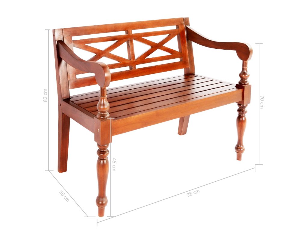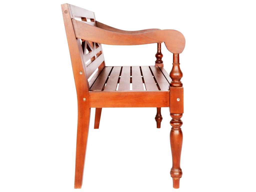 Vysokokvalitná lavička s elegantne zaoblenými opierkami na ruky je vyrobená z mahagónového masívu, ktorý je veľmi stabilný a trvácny. Je naozaj pevná a dá sa ľahko očistiť, vďaka čomu vám bude slúžiť dlhé roky. Lavička sa jednoducho montuje.