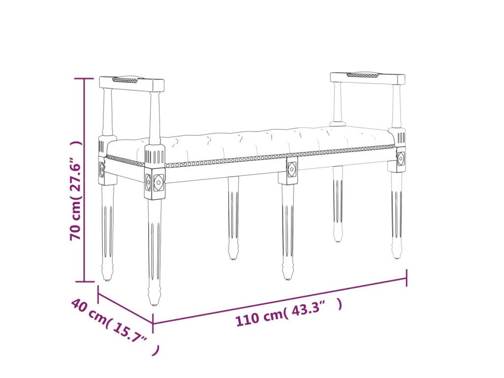 - Mäkký zamat: Táto lavička je vyrobená zo zamatu. Zamat je mäkká, luxusná látka, ktorá sa vyznačuje hustými rovnomerne strihanými vláknami, ktoré sú hladké na dotyk. Zamatová tkanina je jemná, vďaka čomu je pohodlná a príjemná na dotyk.