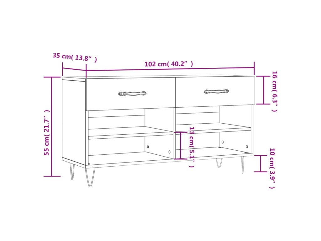 - Rozmery: 102 x 35 x 55 cm (Š x H x V)