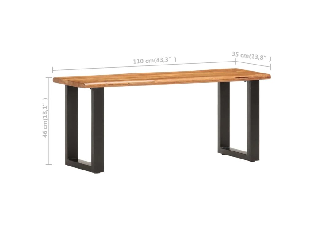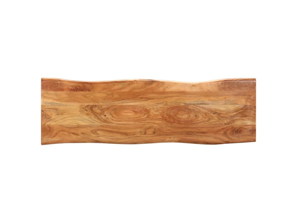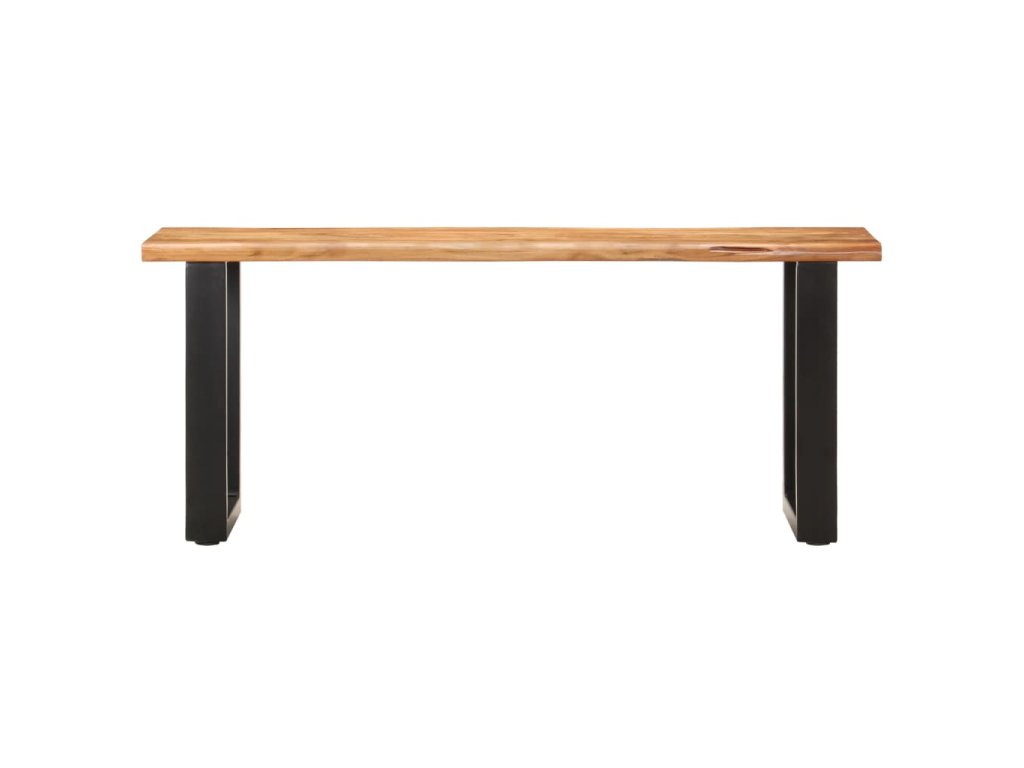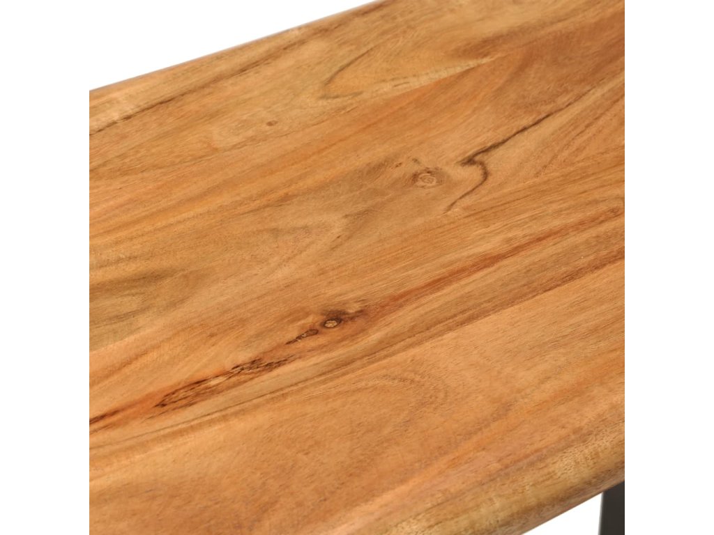 Vrchná doska lavičky je vyrobená z masívneho akáciového dreva, čo je druh tvrdého a tropického dreva, takže je mimoriadne odolná a trvácna. Prírodné okraje sledujú prirodzený tvar kmeňa stromu a zvyšuje krásu lavice. Vďaka remeselnému spracovaniu a krásnej štruktúre dreva je každý kus nábytku jedinečný a mierne sa líši od ostatných. Oceľové nohy s práškovým nástrekom navyše prispievajú k priemyselnému štýlu a výrazne zvyšujú stabilitu lavičky. Montáž tejto lavičky je jednoduchá.